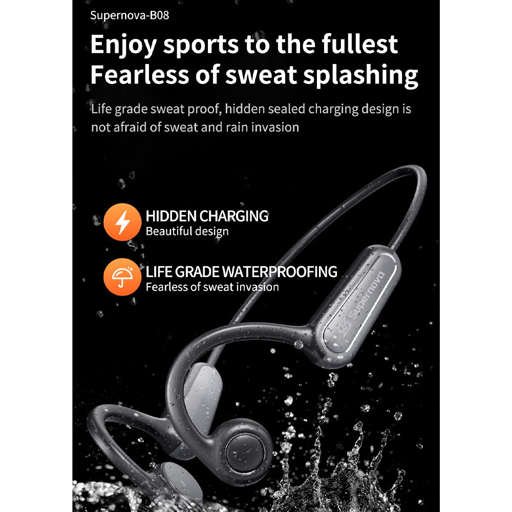 Supernova B08 Fone De Ouvido Bluetooth 5.4 Esportes Sem Fio Fones Condução Óssea Com Microfone Neckband