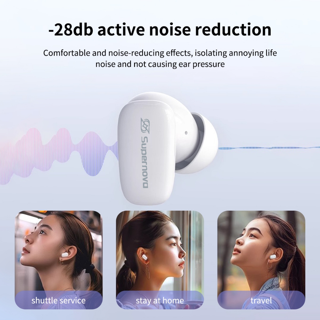 Supernova T50i Verdadeiro Sem Fio ANC TWS Bluetooth Fone De Ouvido Mini Fones Alta Fidelidade Áudio Ultra Curto Alça