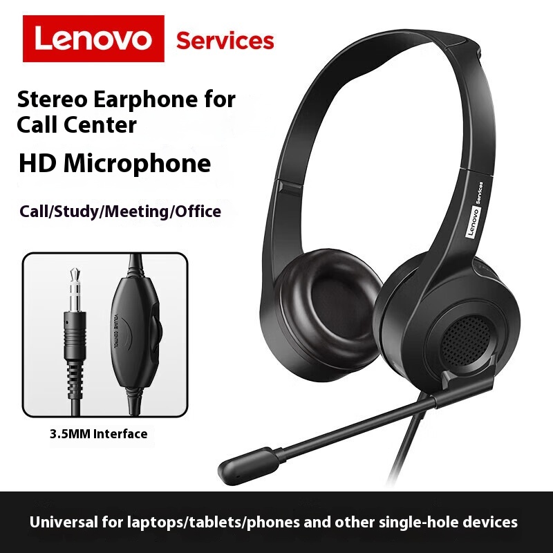 Fones De Ouvido Com Fio Lenovo E01 Microfone Cancelamento De Ruído E Especializados Para Uso Em Atendimento Ao Cliente C