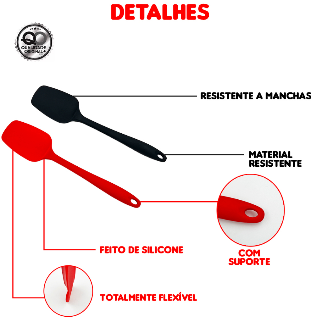 Colher de Silicone Espátula Reta 27cm Grande