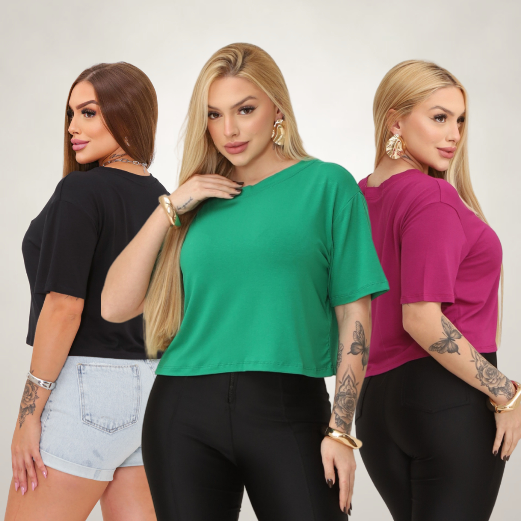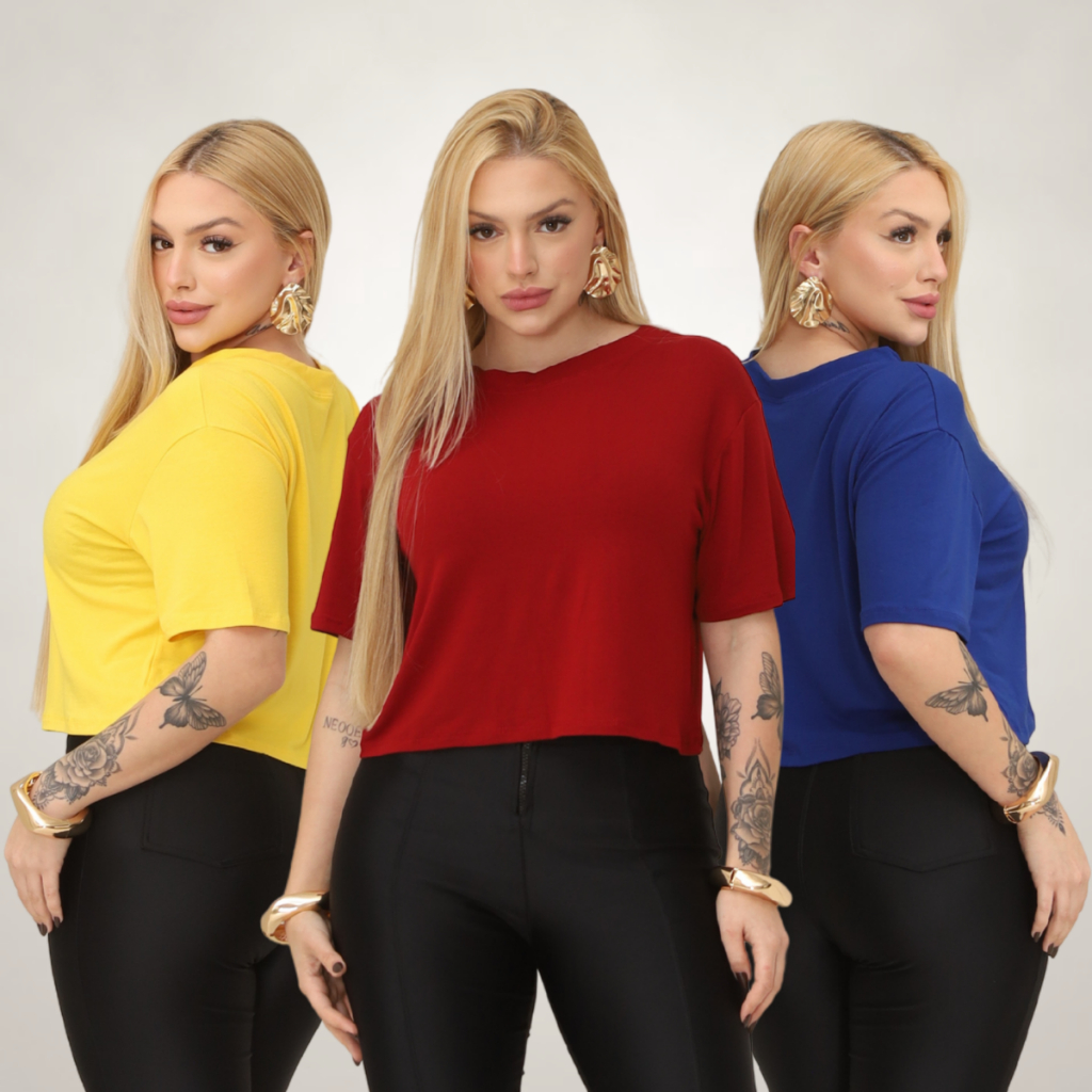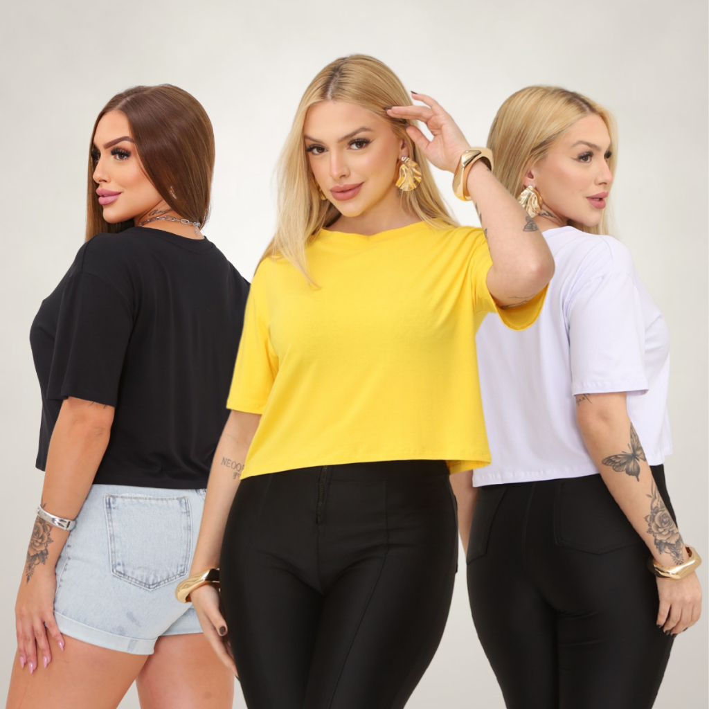Kit 3 Blusinhas Feminina Estilosa Casual Festa Lisa Verao