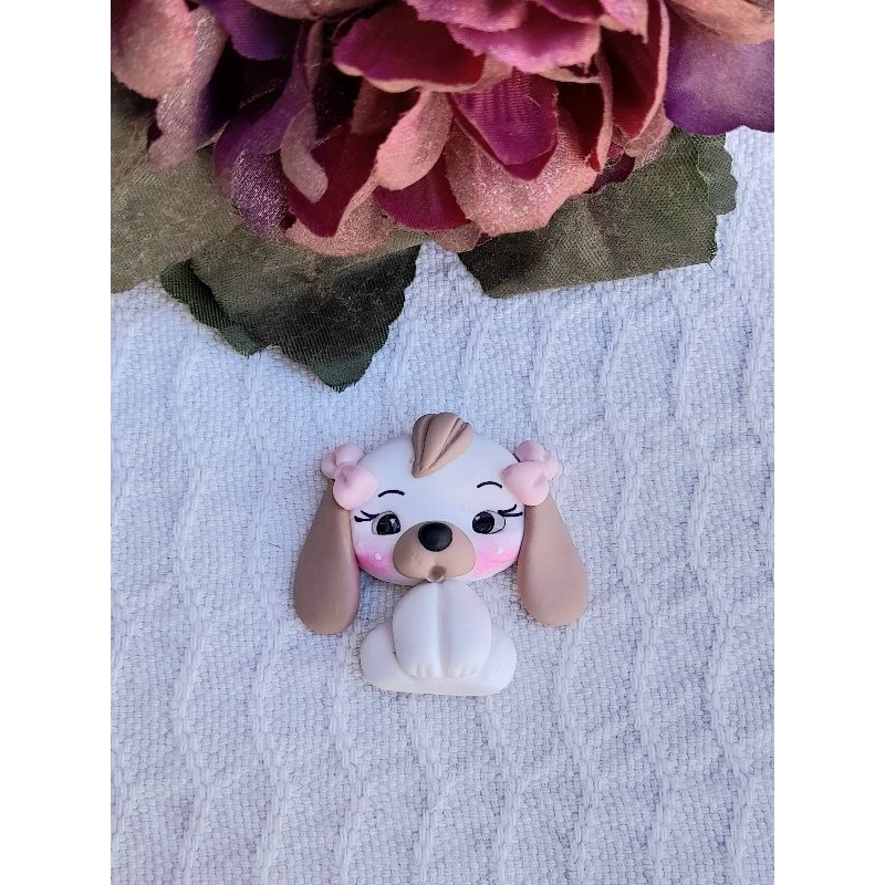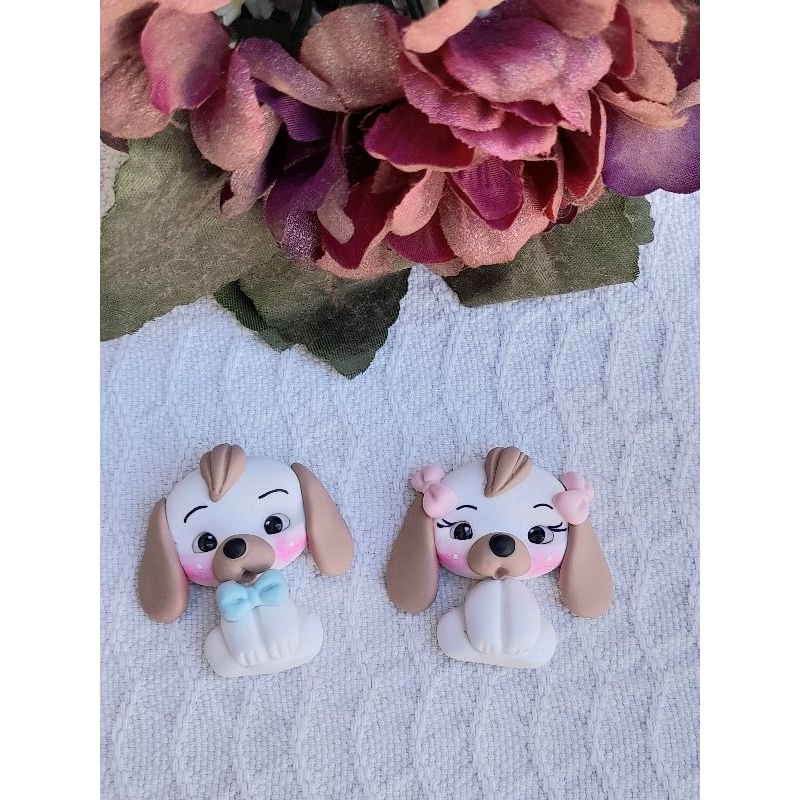 Apliques casal de cachorrinhos em biscuit brancos. REF:A026