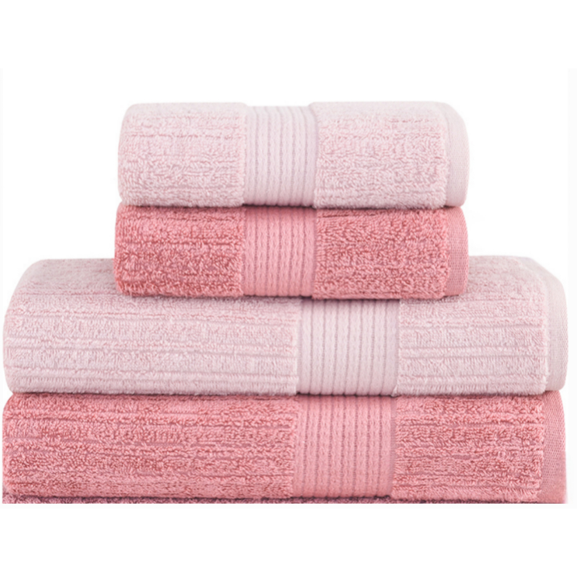Jogo De Banho Buddemeyer - Toalha Fio Penteado Canelado - 100% Algodão - Kit Banho e Rosto - 4 Peças