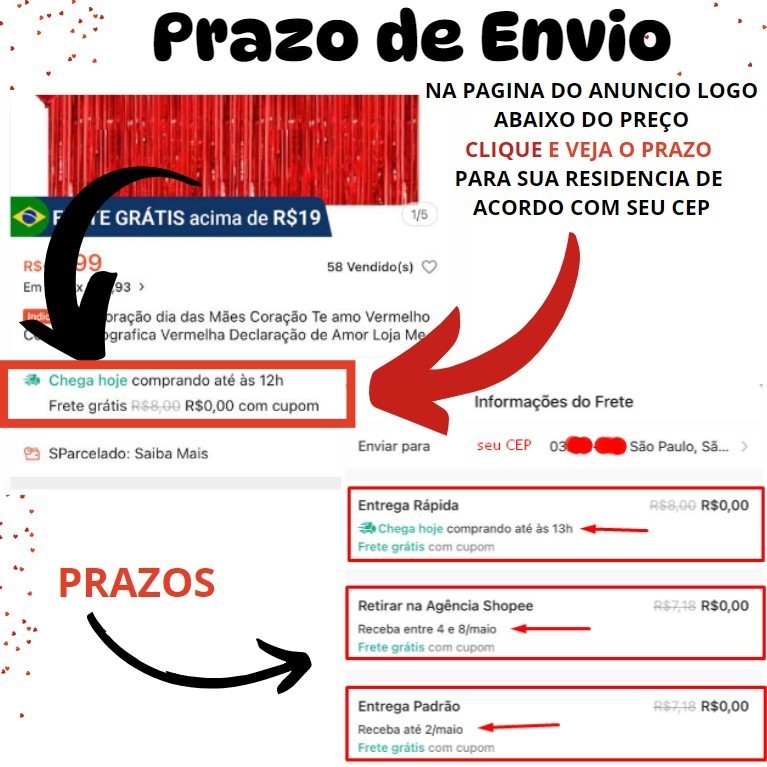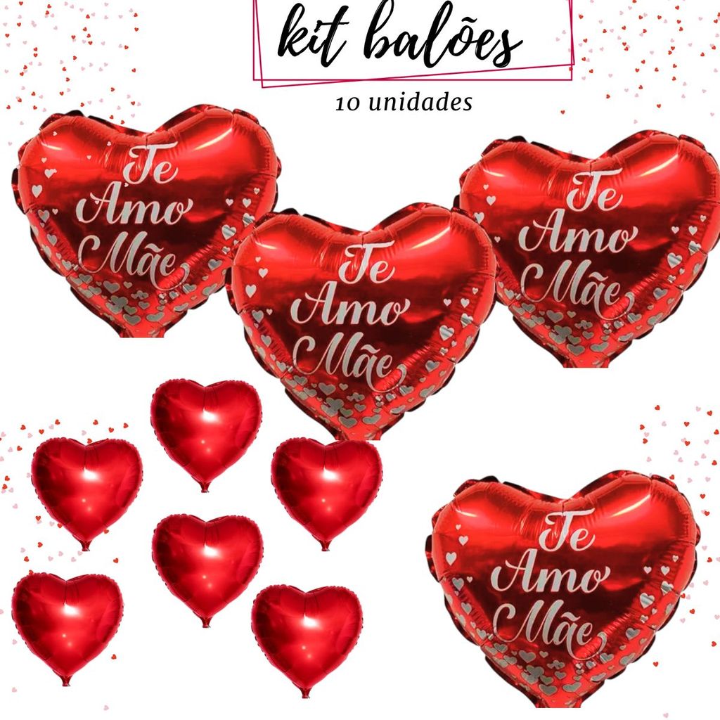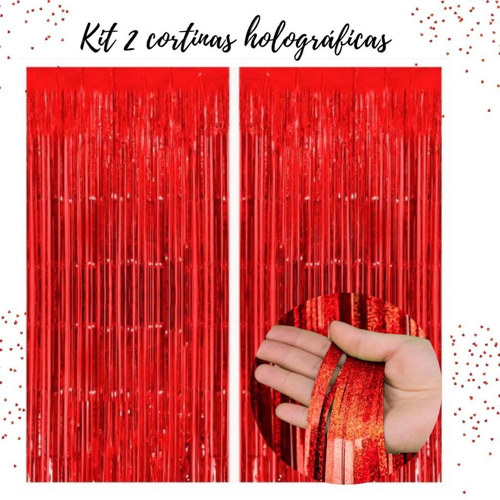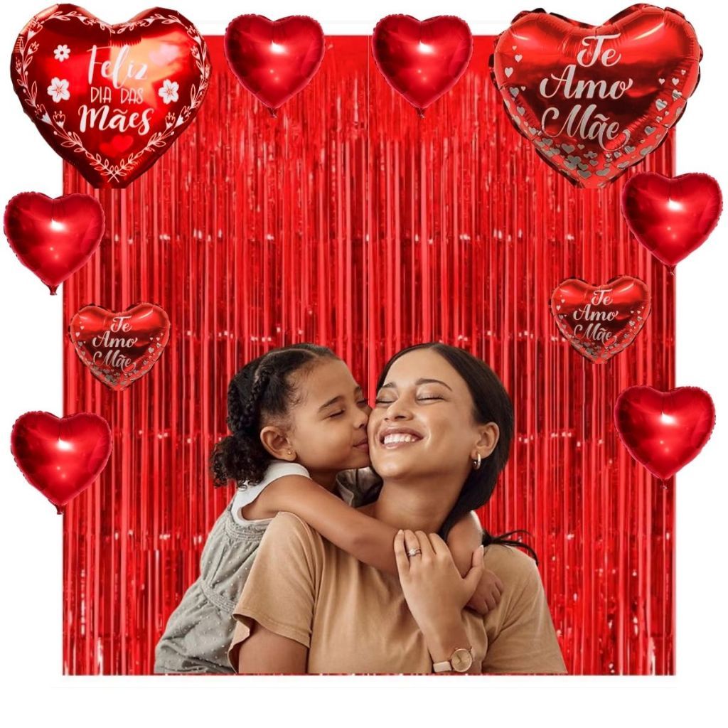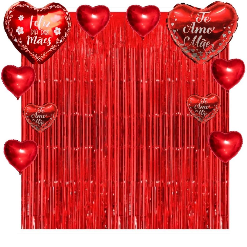 KIT Decoração para dia das Mães Coração Te amo Cortina Holográfica Vermelha Declaração de Amor Loja