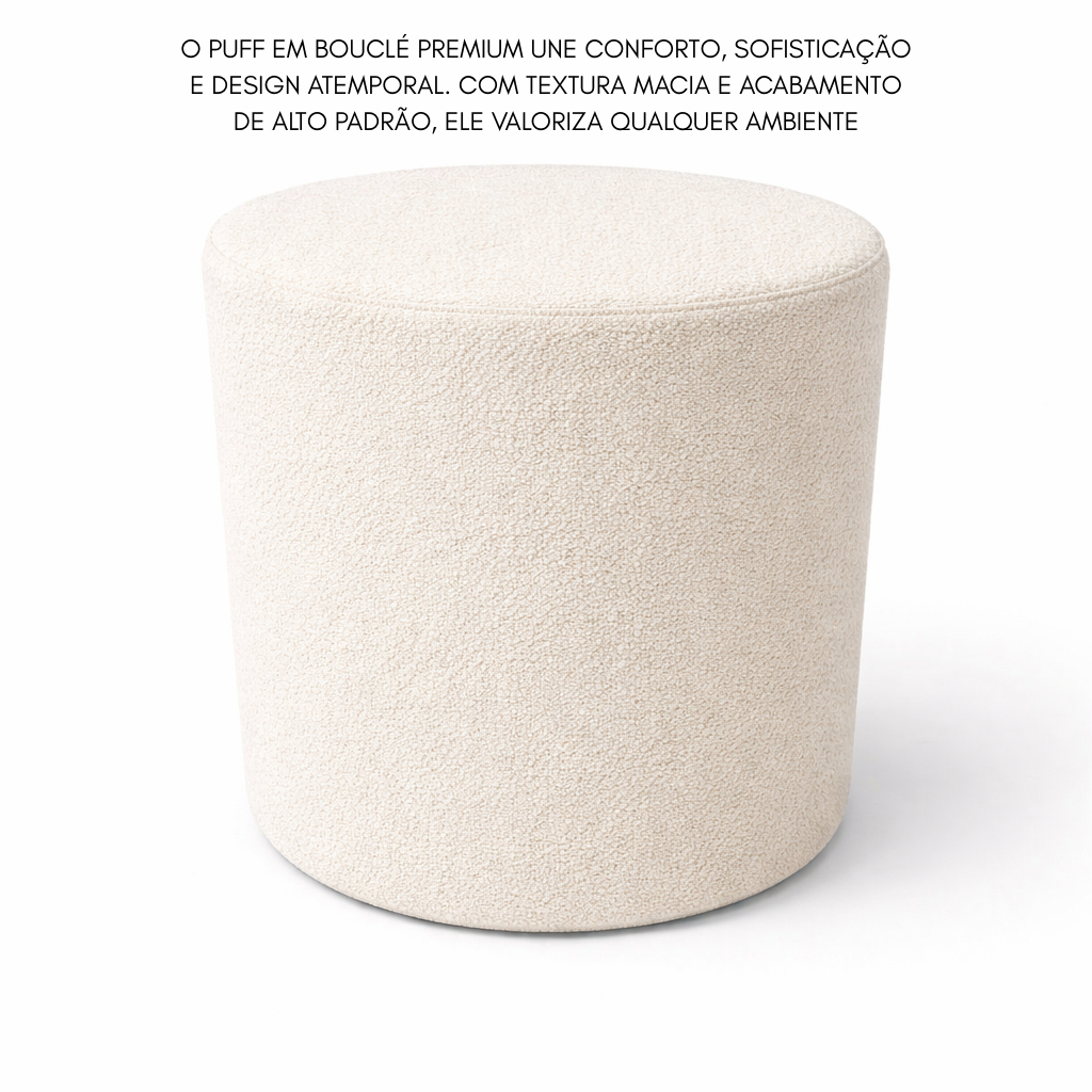 Puff Bouclé Decorativo Redondo | Conforto, Design Moderno, Sala, Quarto e Escritório