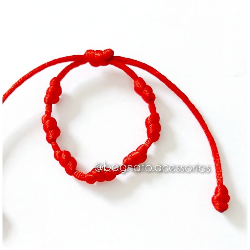 CONJUNTO COM 3 PULSEIRAS DE PROTEÇÃO 7 NÓS VERMELHAS : 2 adultos e 1 bebê -(fio de 2 mm)