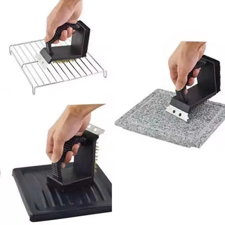 Escova Limpa Grelha De Churrasqueira 3 Funções Cerdas Aço