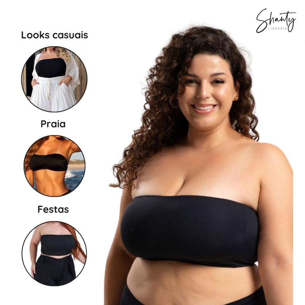 Sutiã Top Faixa Plus Size Microfibra Tomara Que Caia Sem Bojo