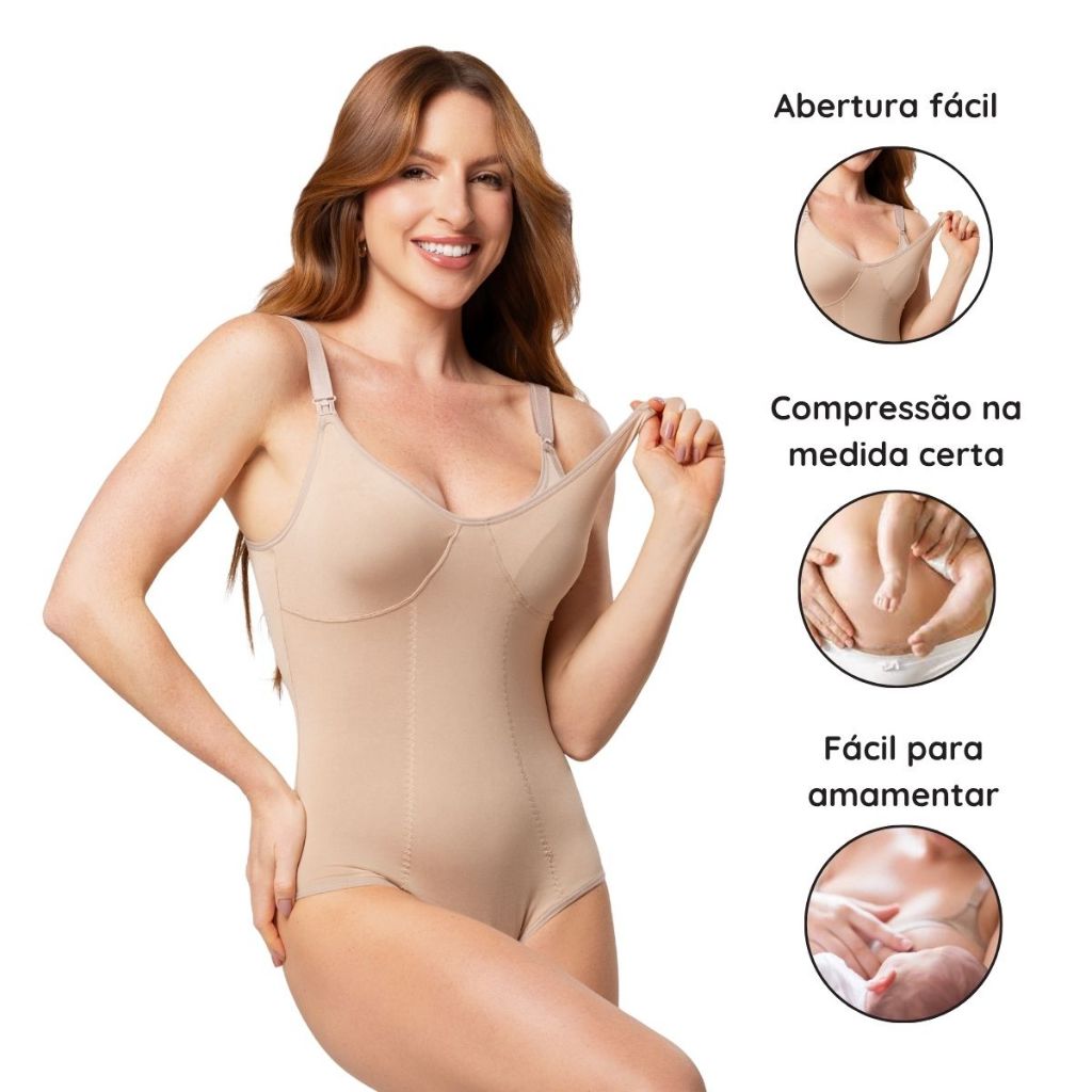 Body Modelador Amamentação Pós-Parto Alças Largas Conforto Suaviza Marcas Fecho Fácil