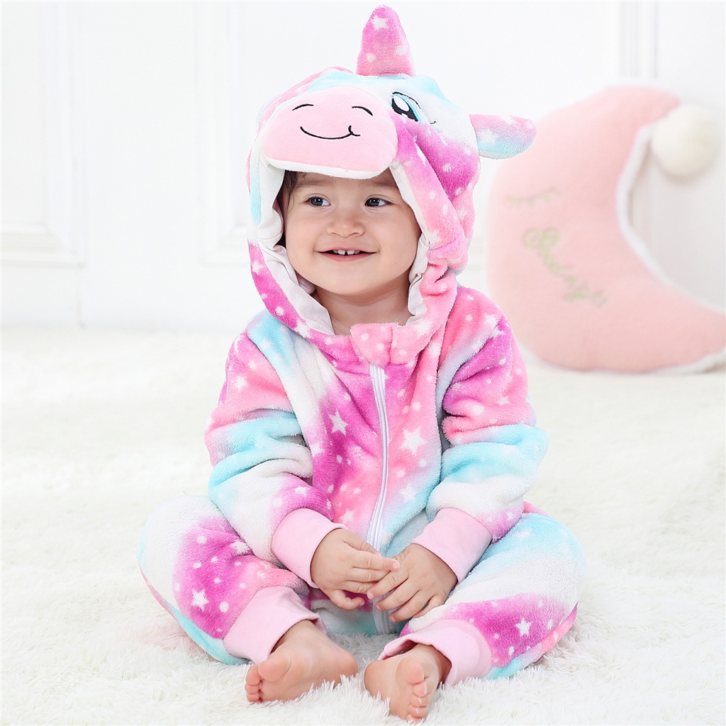 Macacão De Manga Comprida Flexível De Flanela Com Desenho De Leão/Vaca Para Bebê/Recém Nascido/Meninas/Meninos Baju Bayi