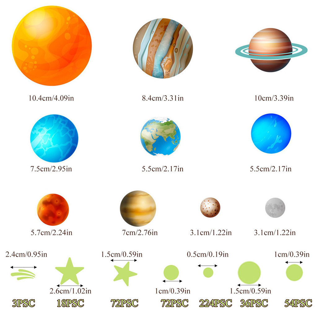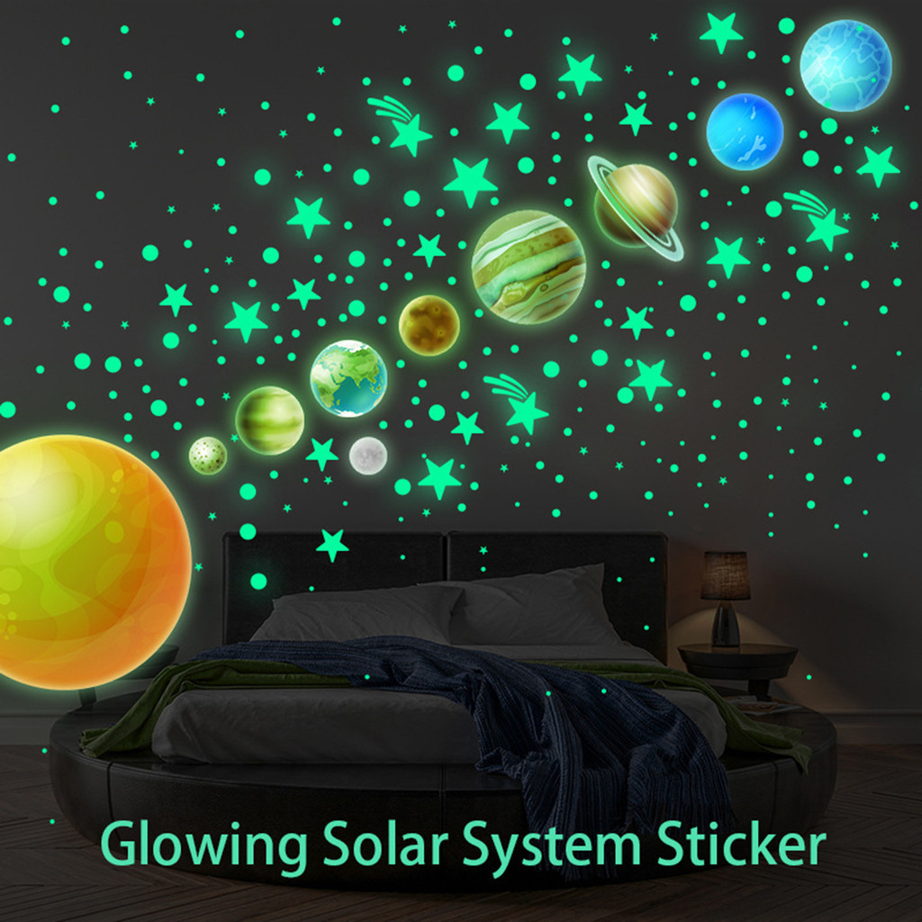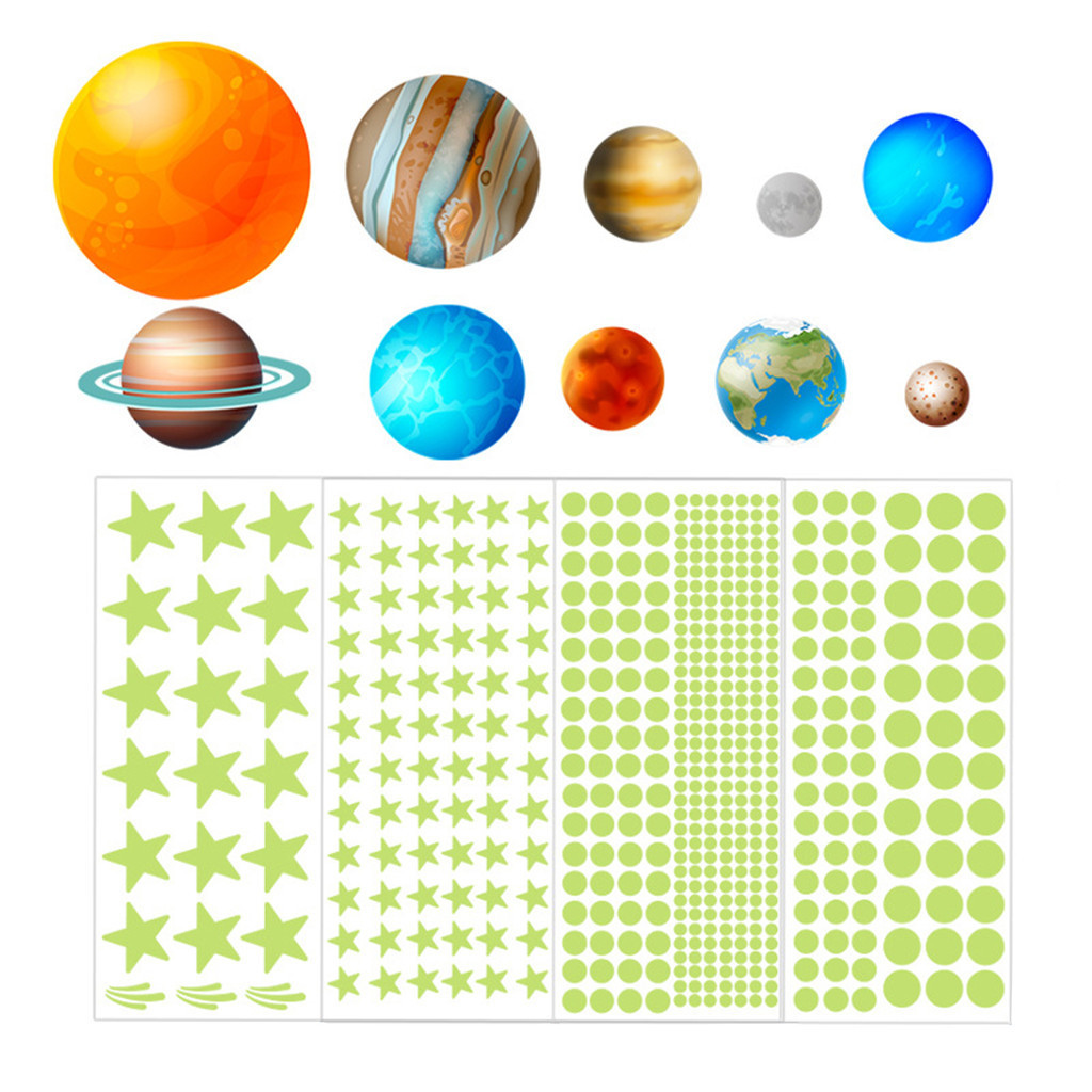 Teto Estrela Luminosa 9 Planetas + 435 Pontos Autocolantes Fluorescentes De Parede Infantil Estrelas Para