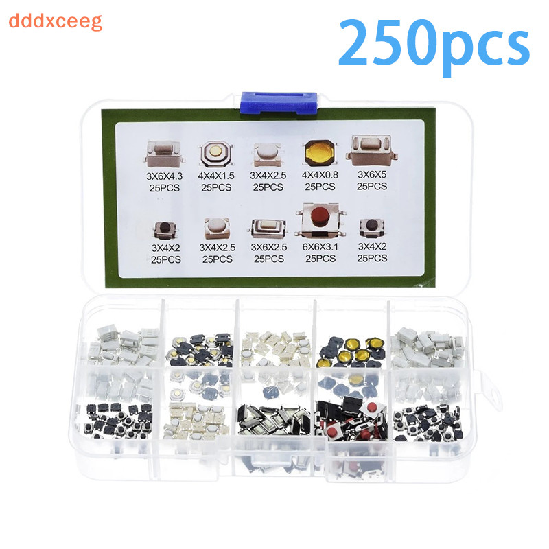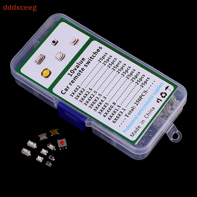 [dddxceeg] 100/250pcs Botão Do Carro 10 Tipos De Controle Remoto Teclas Microinterruptor De Toque Com Caixa