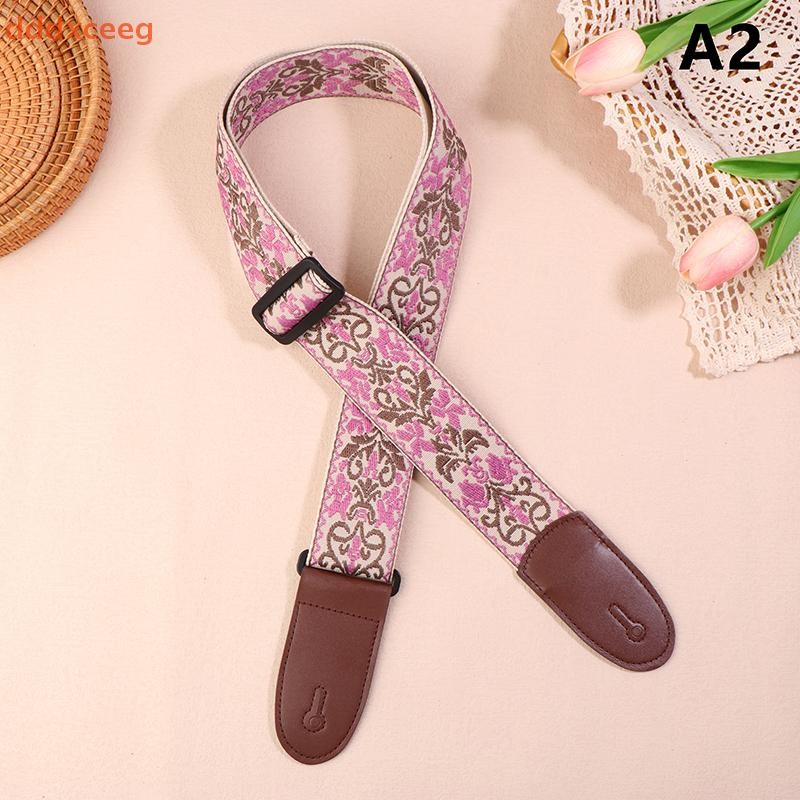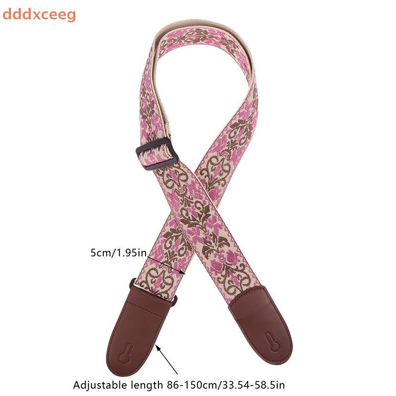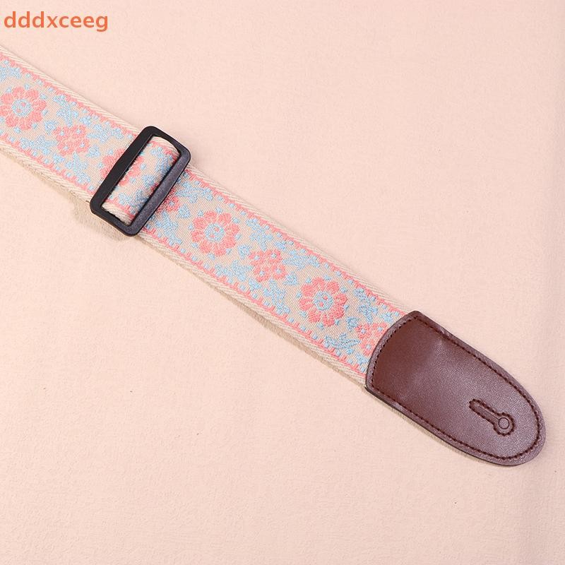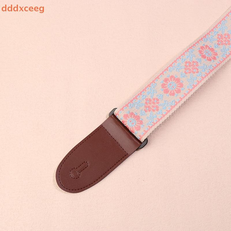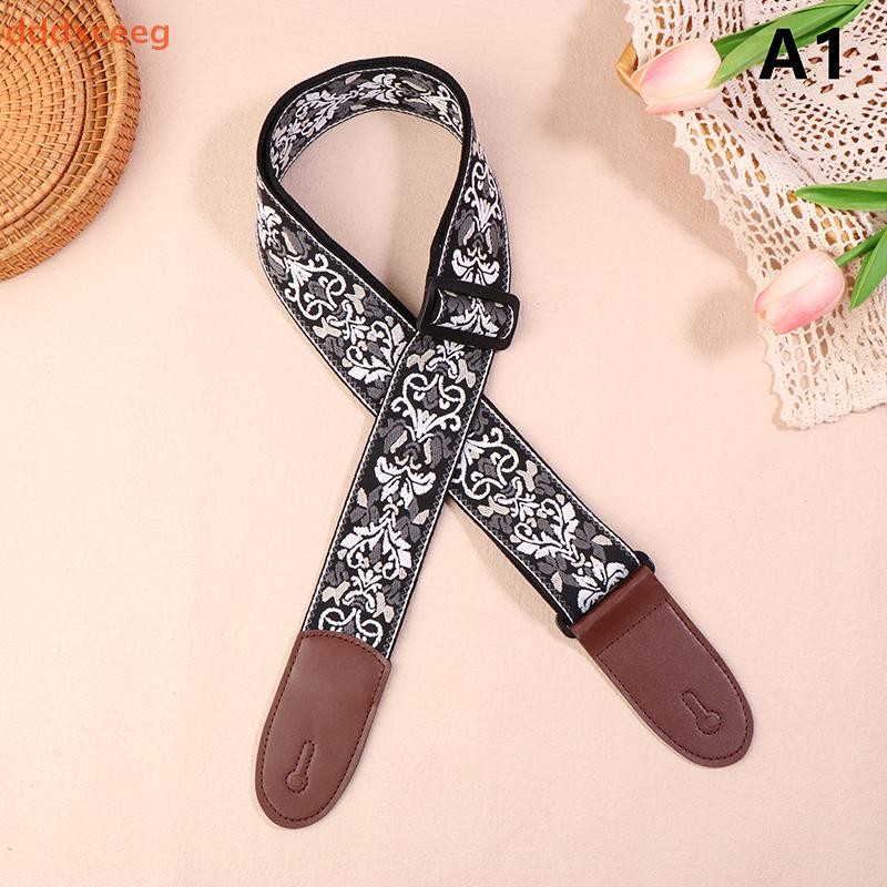 [dddxceeg] Correia De Guitarra Baixo Algodão Couro Bordado Cintas Alça De Pescoço Ajustável Acústica Elétrica Acessórios