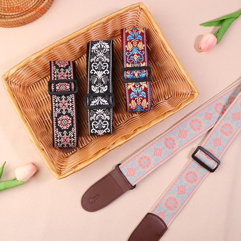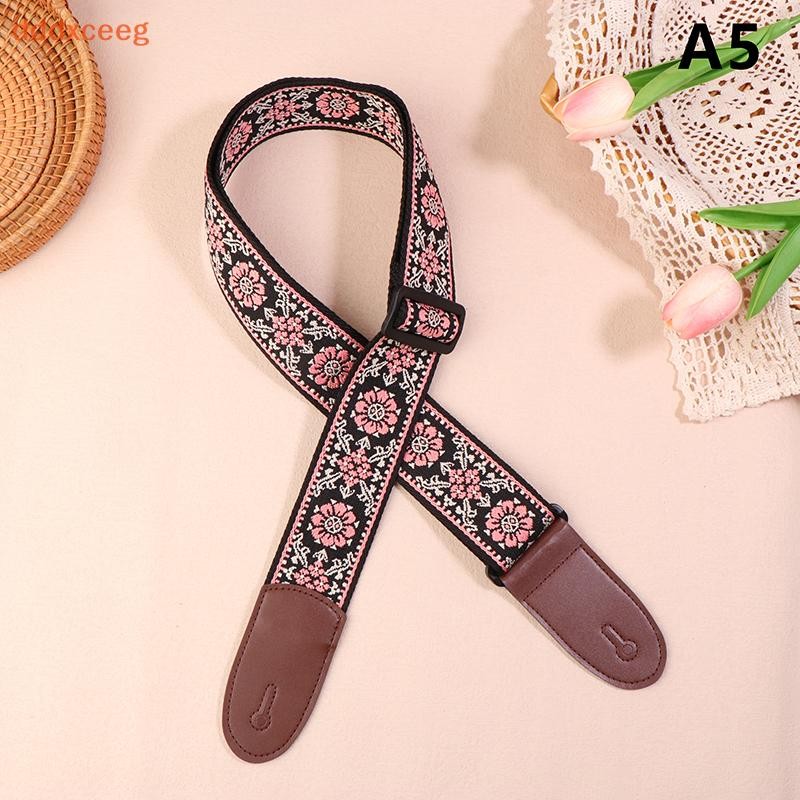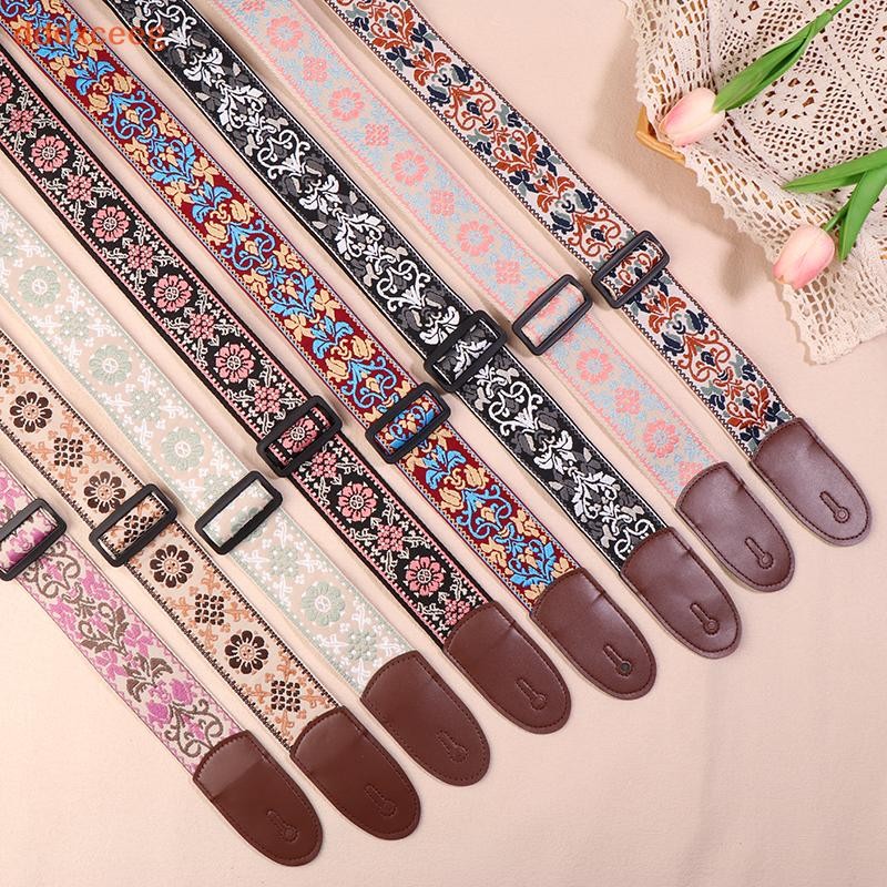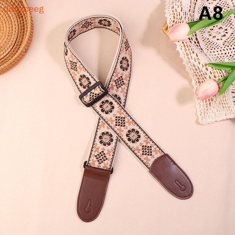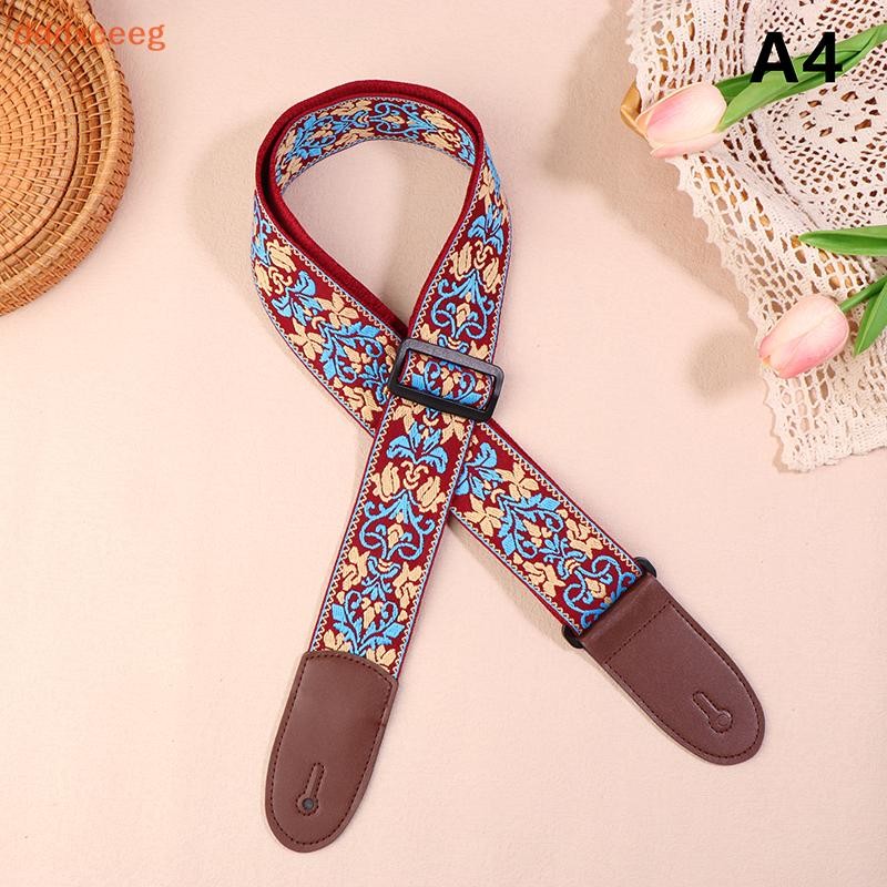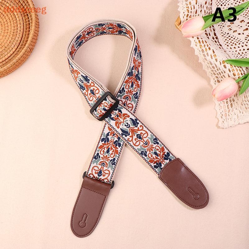 [dddxceeg] Correia De Guitarra Baixo Algodão Couro Bordado Cintas Alça De Pescoço Ajustável Acústica Elétrica Acessórios