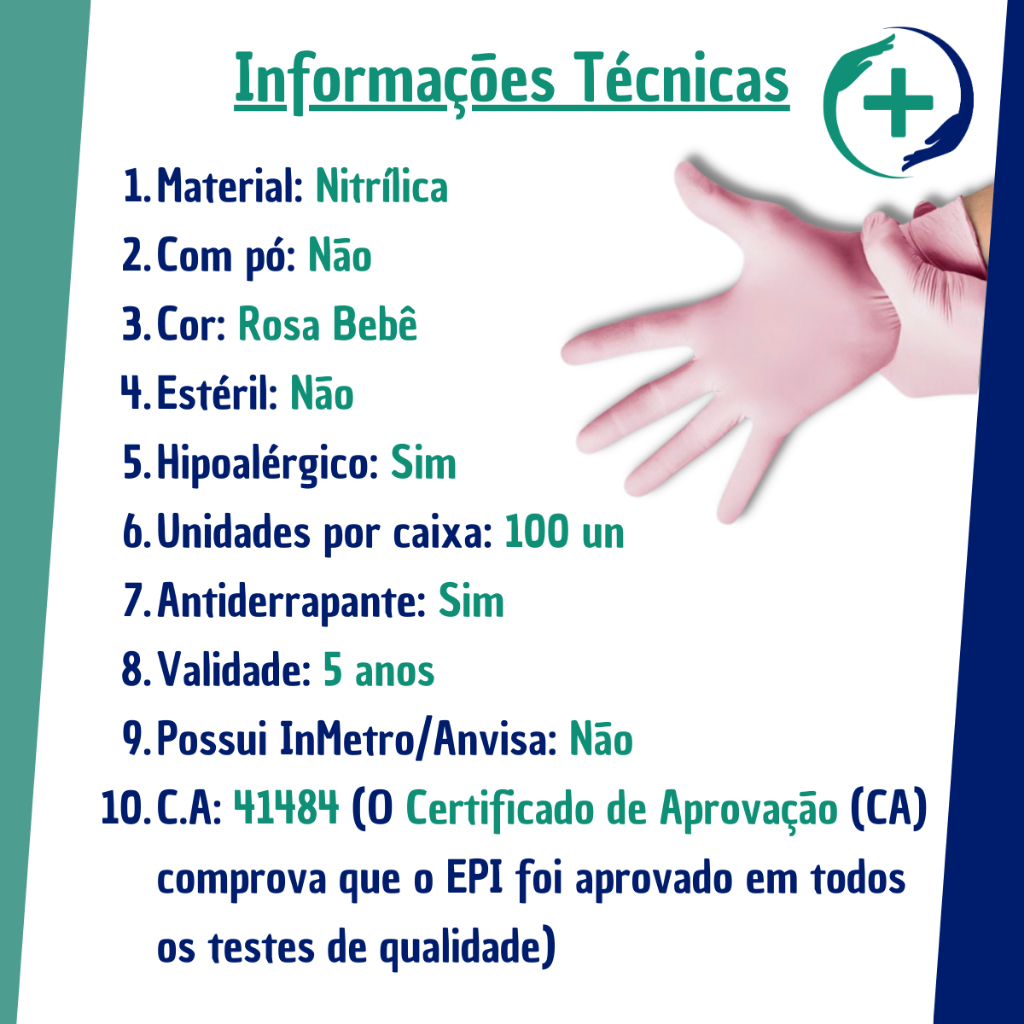 Luva Nitrílica Sem Pó Rosa Bebê P M G 100 Unidades
