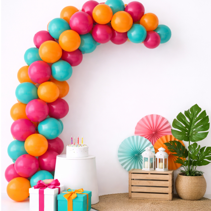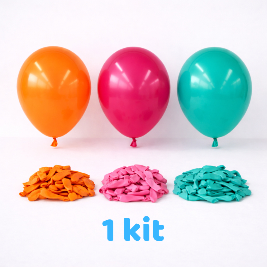Kit 50 Balões Tardezinha Laranja + Pink +Tiffany + Fita para Arco - Bexigas 7 Polegadas
