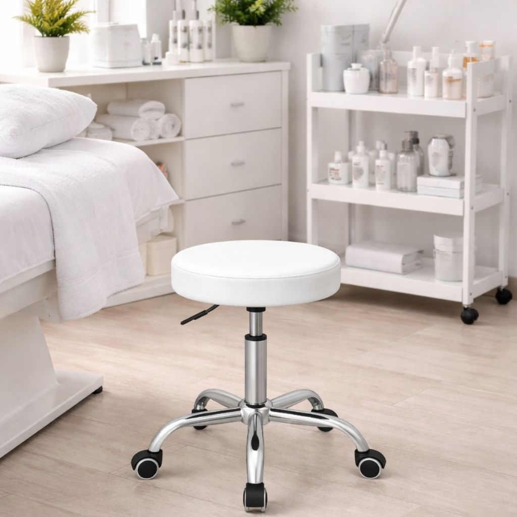 Cadeira Mocho Giratório S/ Encosto Estética Massagista Tatuador Base Cromada