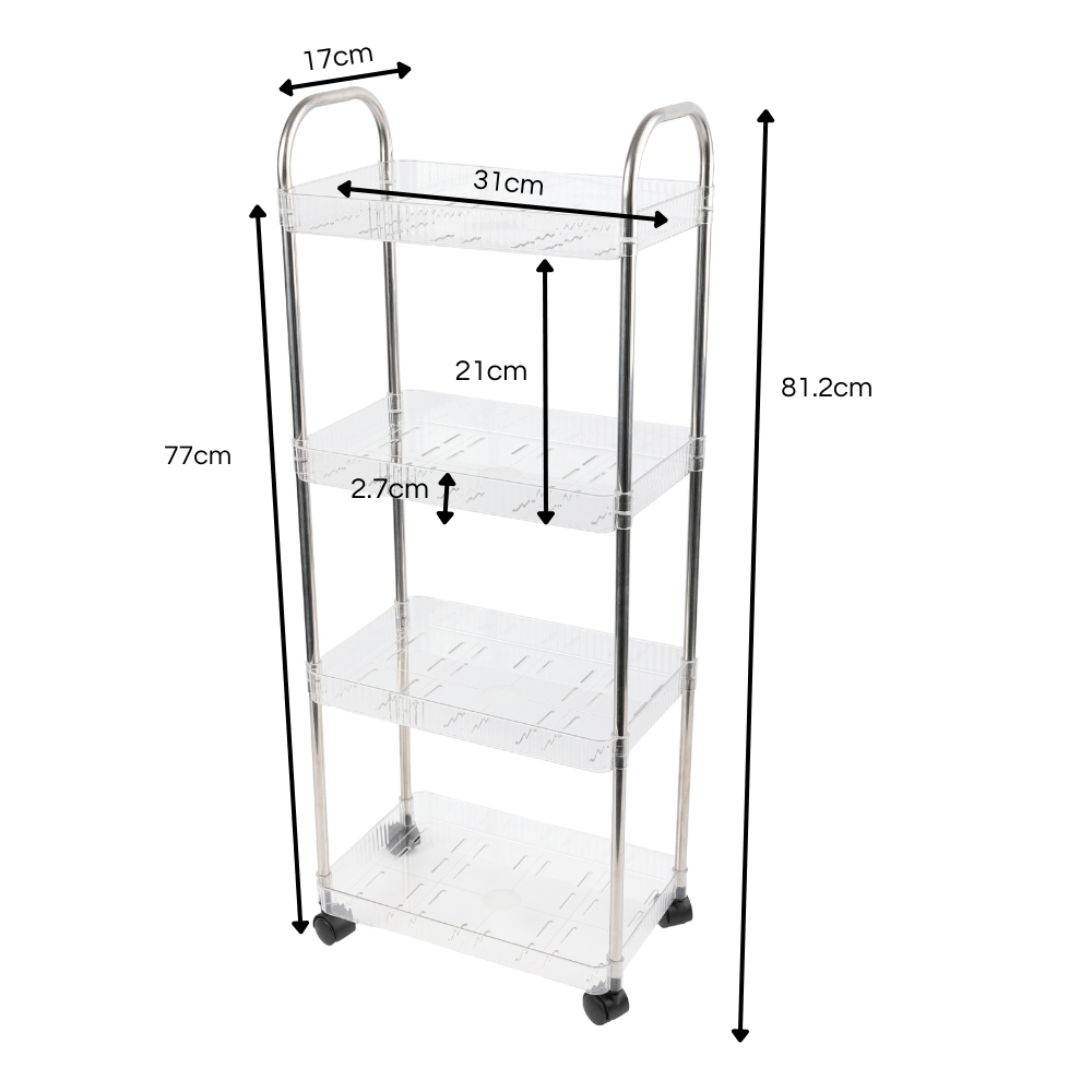 Carrinho Organizador de Acrílico Transparentes com 4 Prateleiras