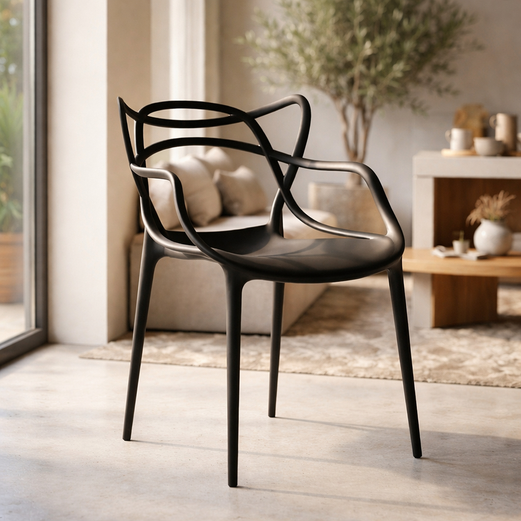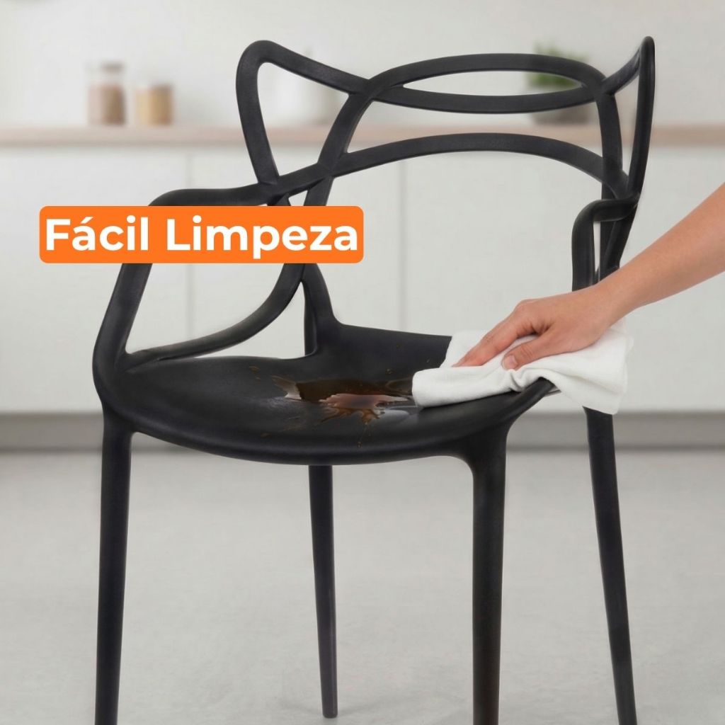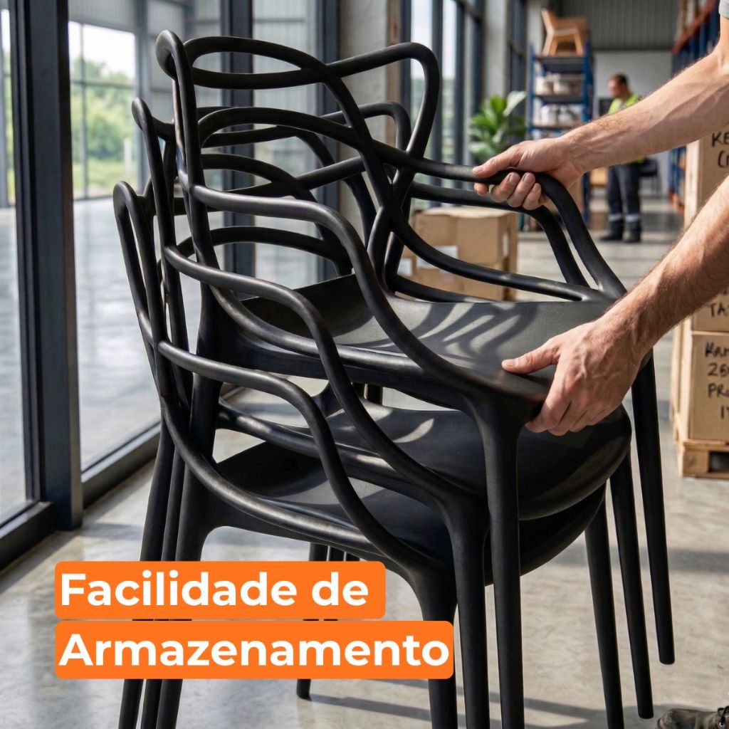 Cadeira de Jantar Allegra Preta Moderna Resistente com proteção UV Cozinha Jardim Área Gourmet Empilhavél