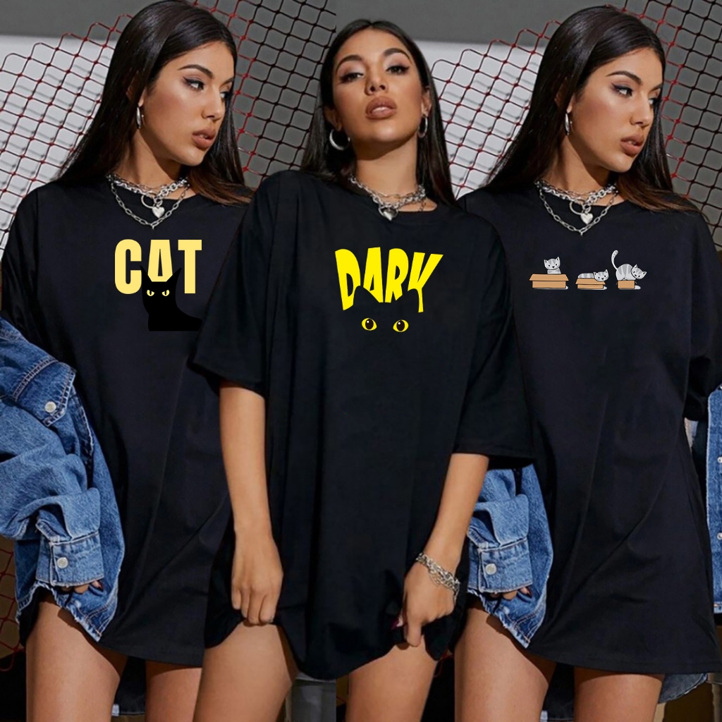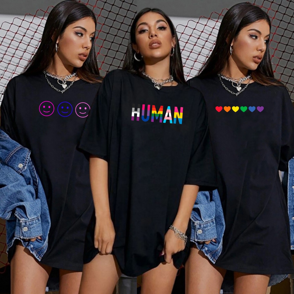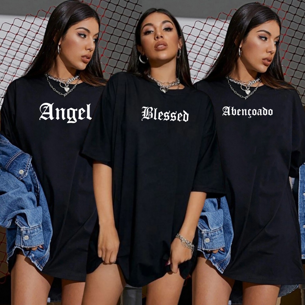 Kit 3 Blusas Femininas Pretas Estampadas Lua Corações Camiseta Academia Ribana T-Shirts
