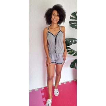 Pijama Blogueirinha Botão/ Baby Doll Feminino Botão Americano Pós Cirúrgico Atacado, Alça