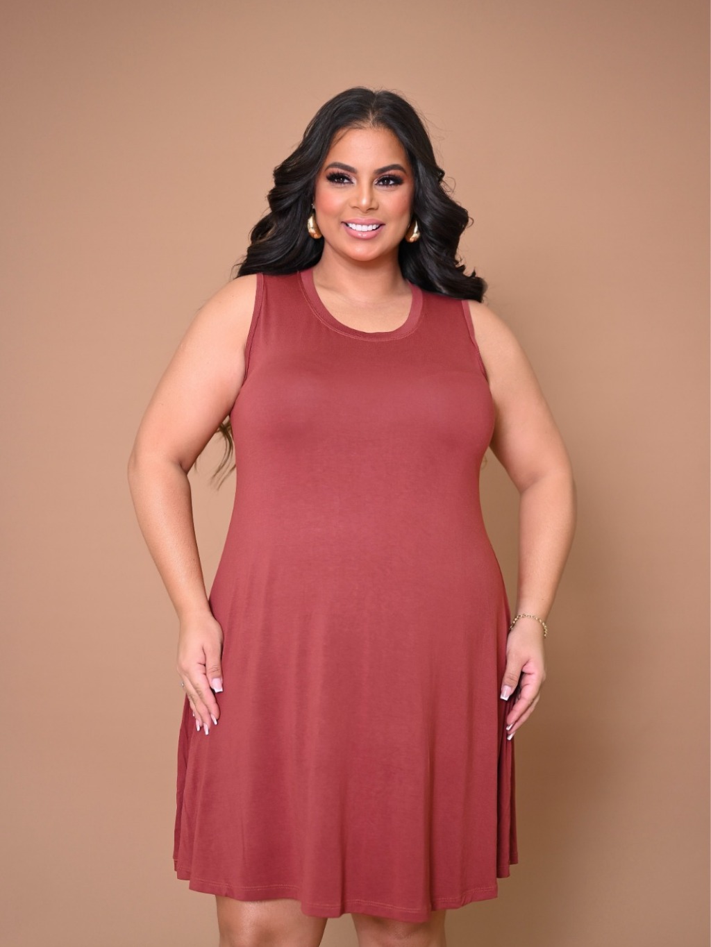 Vestido plus size sem mangas soltinho Viscolycra Várias Cores verão
