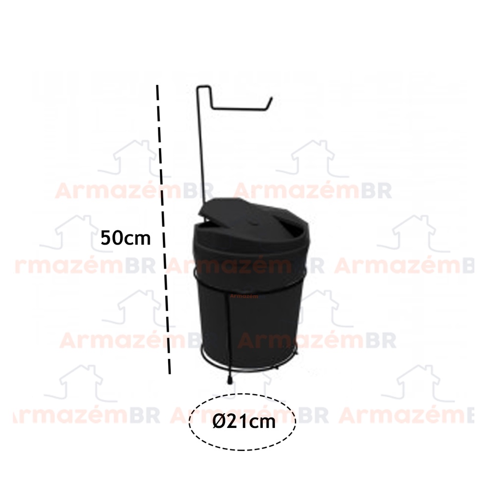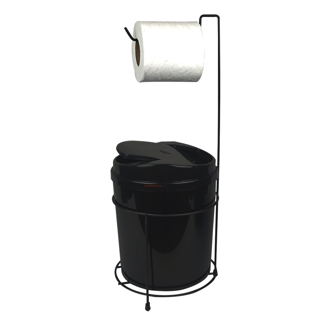 Suporte Porta Papel Higiênico Com Lixeira 5 Litros Basculante Retangular Cesto Lixo Chão Banheiro Preto - 458 AMZ