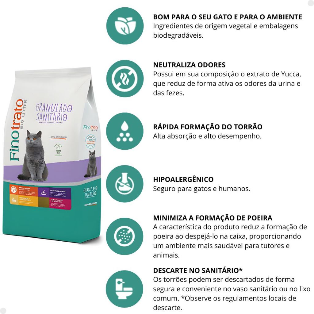 Areia Granulado Higiênico Sanitário Finotrato Para Gatos Bio litter Ultra Premium 2kg