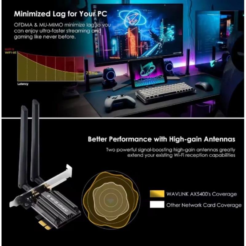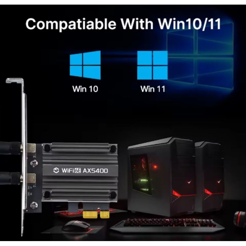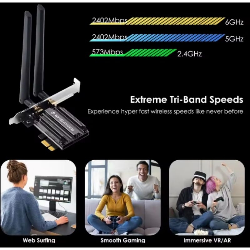 Wi-fi6E AX5400 Fenvi mt7922 5374mbps wifi be bt 5.2 tri banda 2.4g/5g/6ghz pcie 802.11ax placa de rede para pc win 10/11