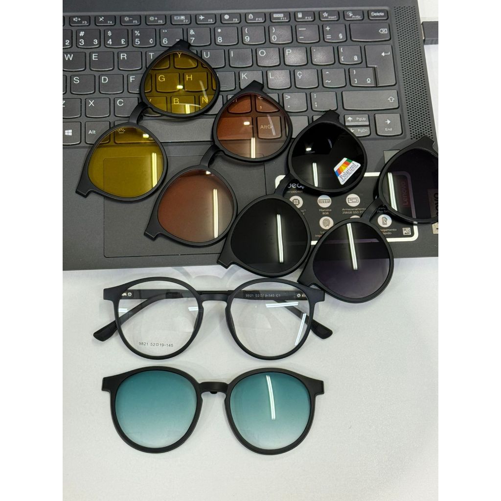 Armação De Óculos 9821 Clipon 5 Em 1 Redondo/ 5 lentes de sol Unissex