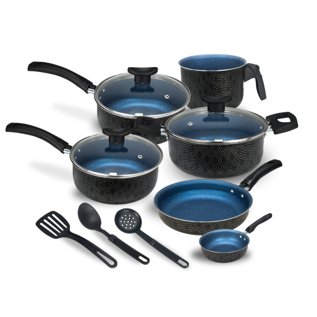 Jogo de Panelas Elegance Antiaderente Teflon 9 Peças Tampa Vidro