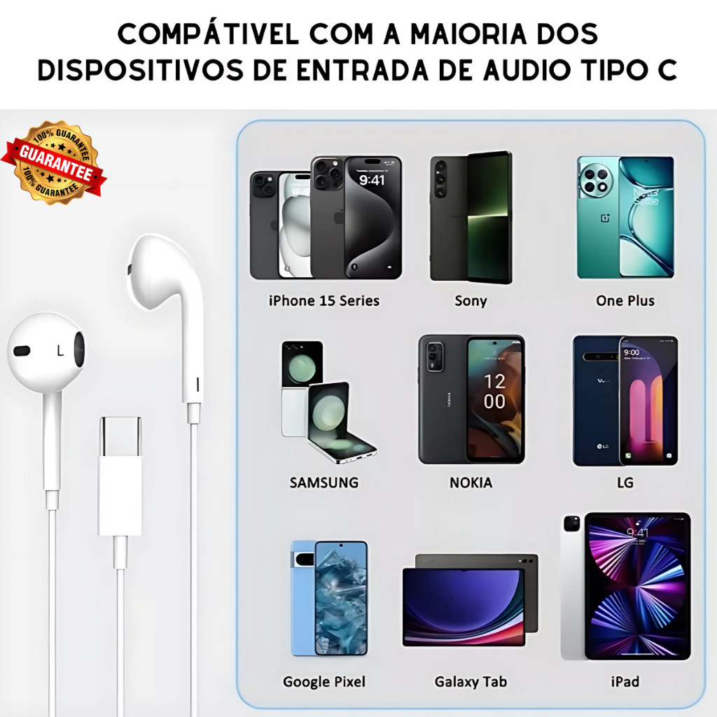 Fone de Ouvido Tipo C iPhone 15 16 17 S20 Fe S21 S22 S23 S24 A23 S25 M54 Fone para celular Tipo C