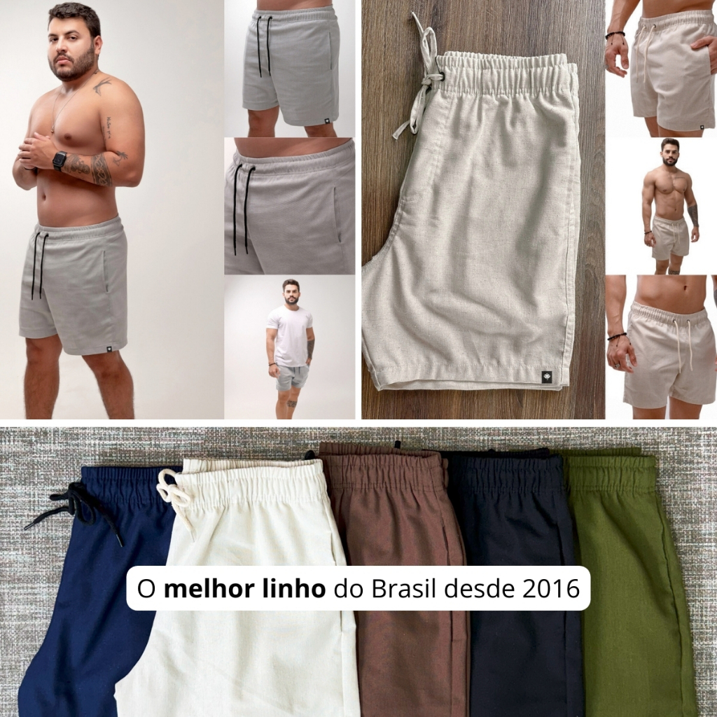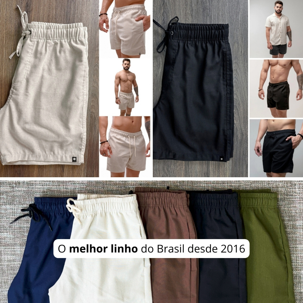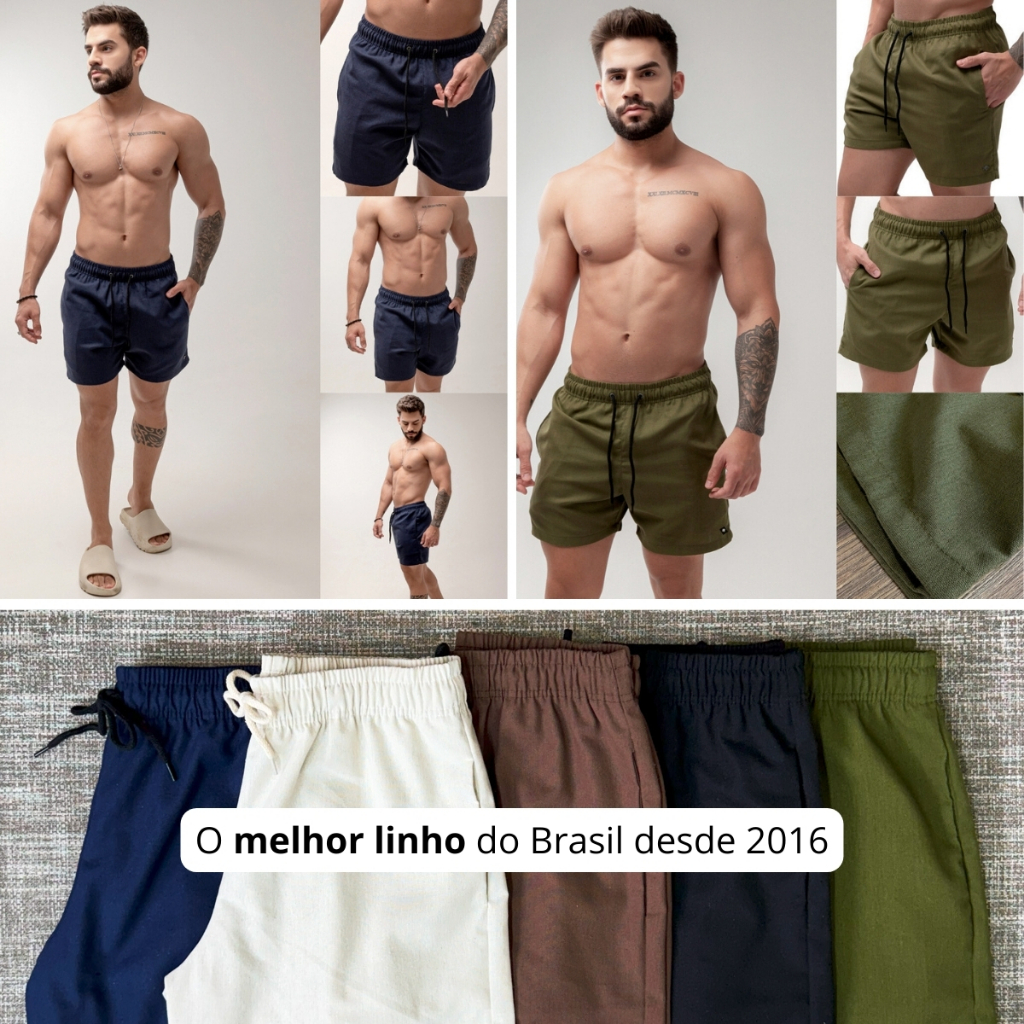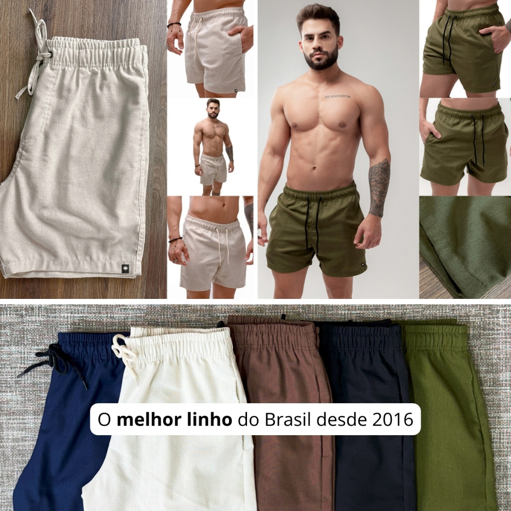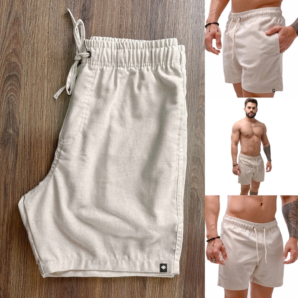 Kit 2 Short de Linho Bermuda Masculina Premium Mauricinho Casual Praia Verão Coloridos Promocao