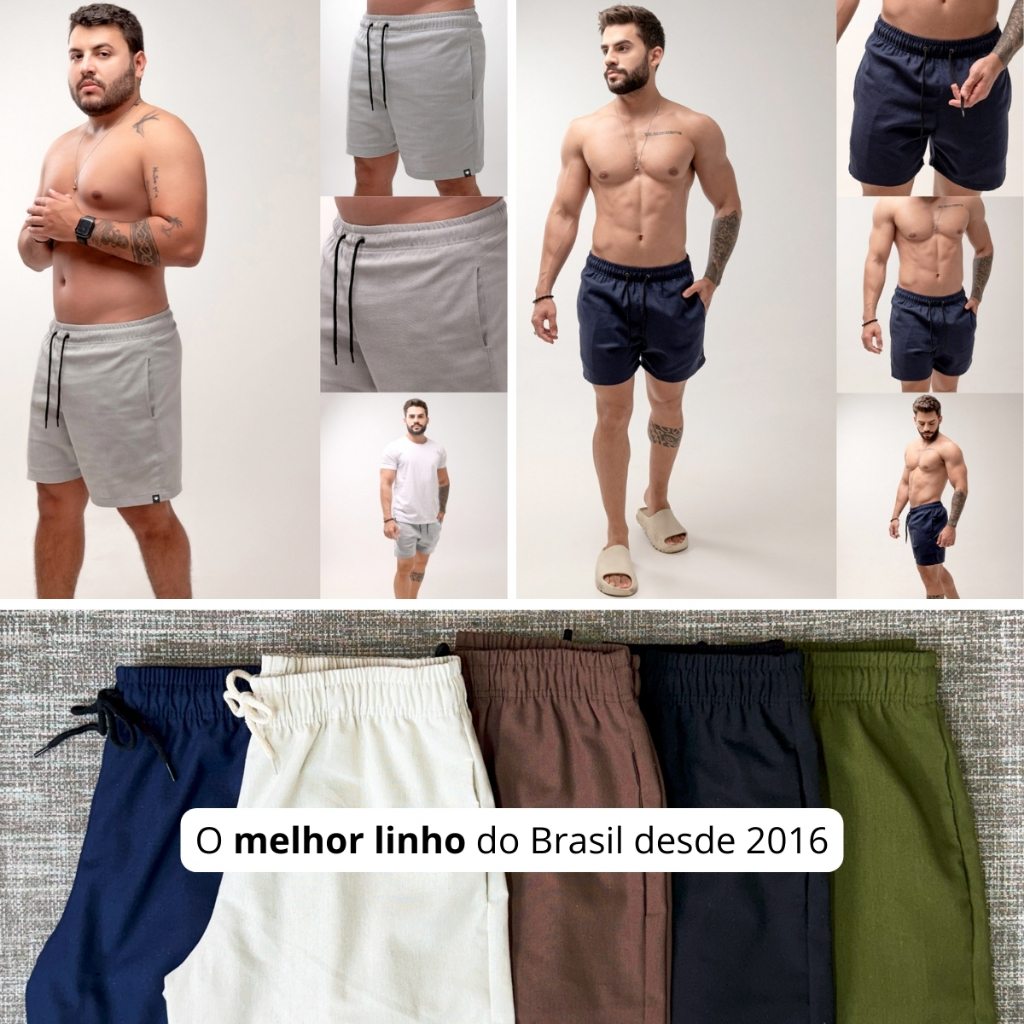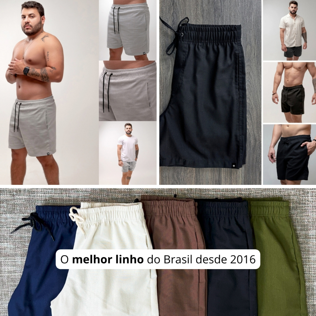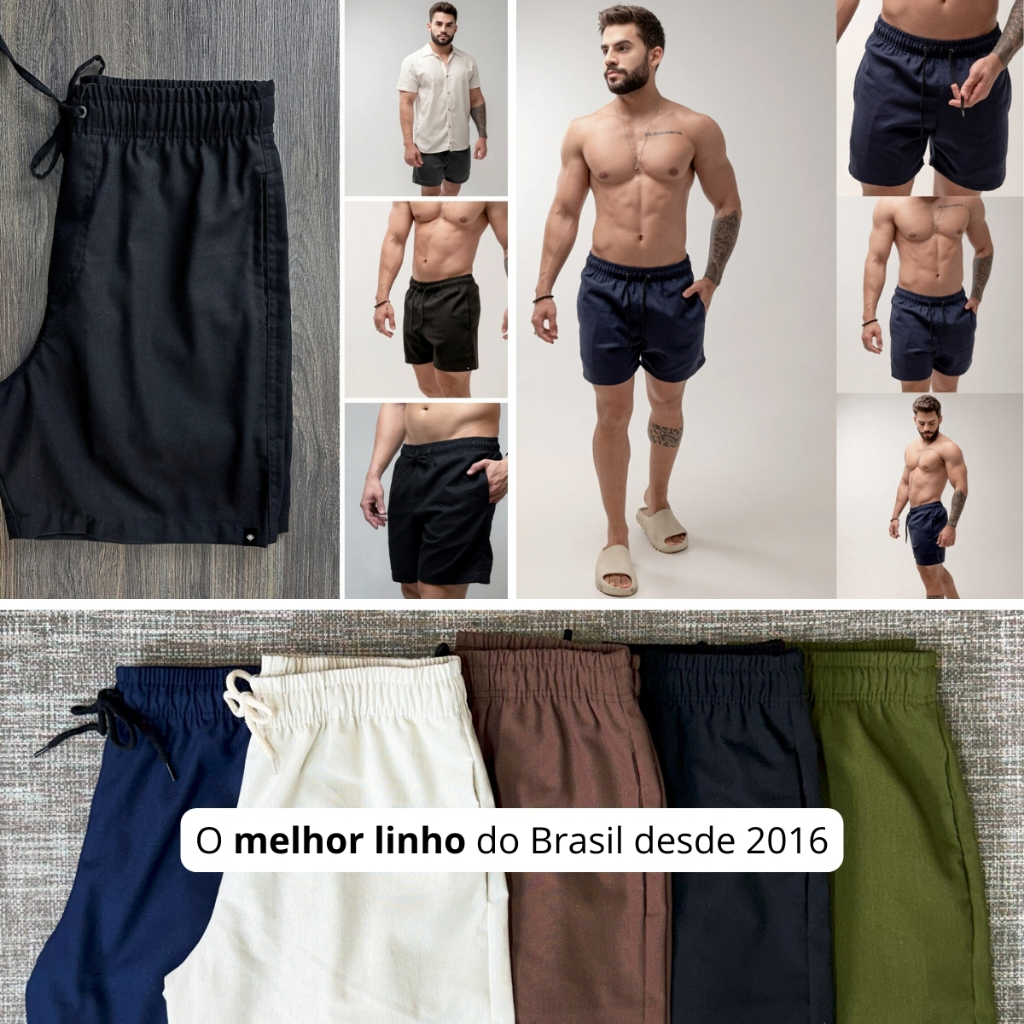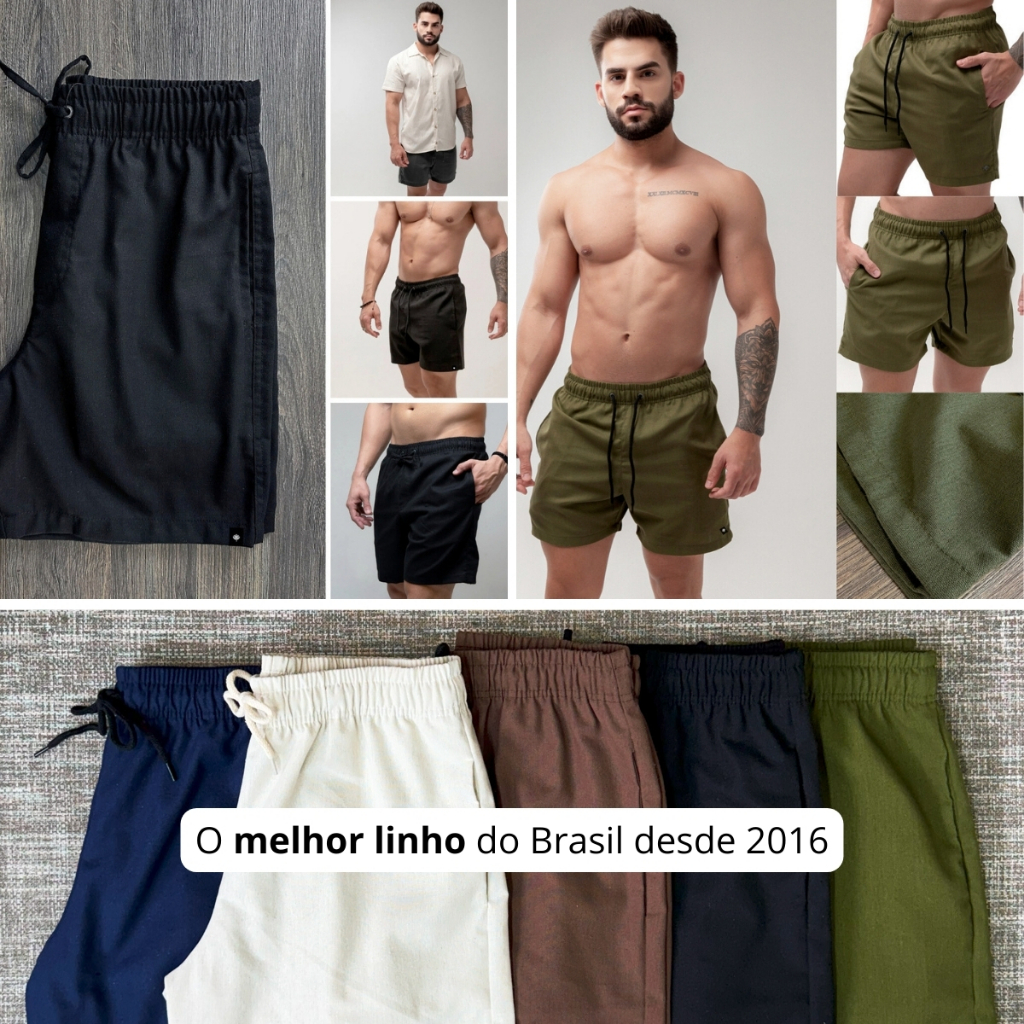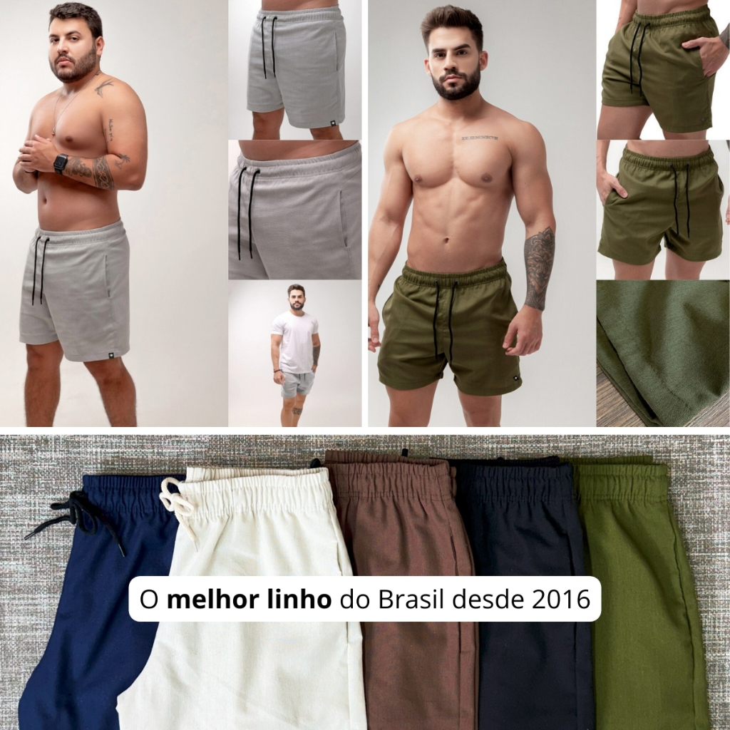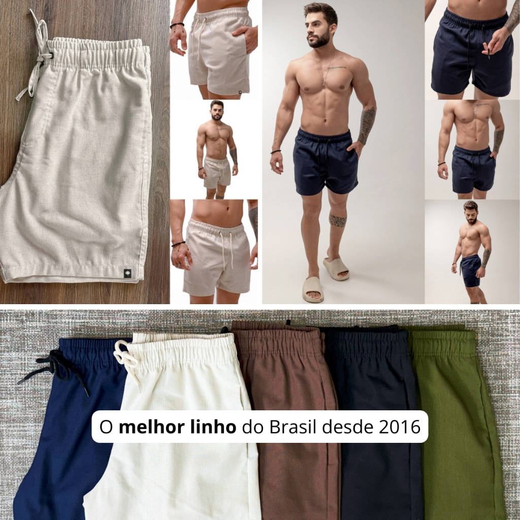 Kit 2 Short de Linho Bermuda Masculina Premium Mauricinho Casual Praia Verão Coloridos Promocao