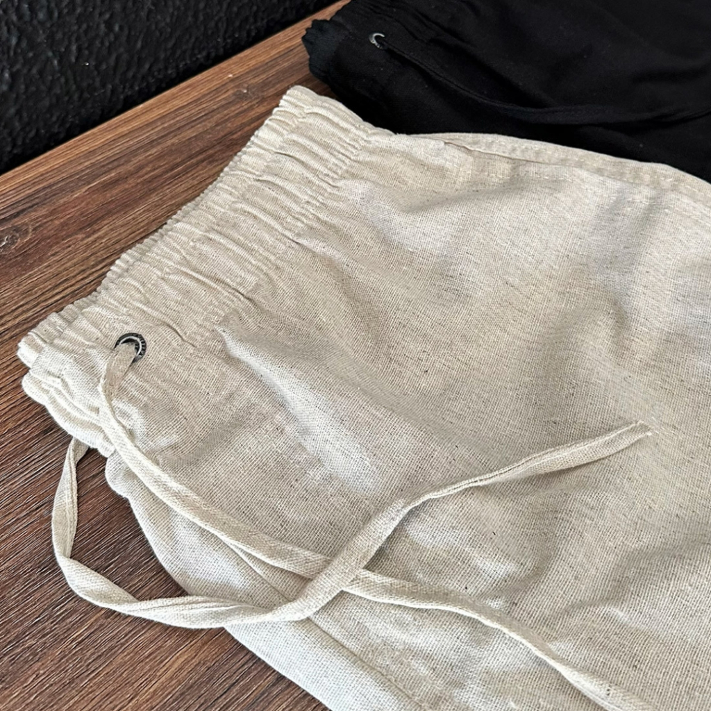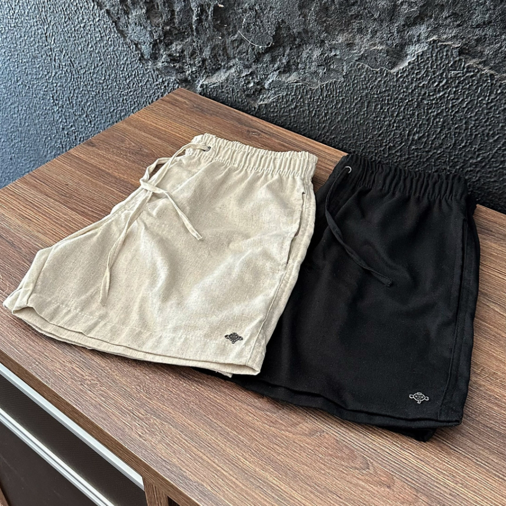 Kit 2 Shorts em Linho Masculino Premium Mauricinho Bermuda Casual Praia Verão Cor Offwhite Natural e Preto
