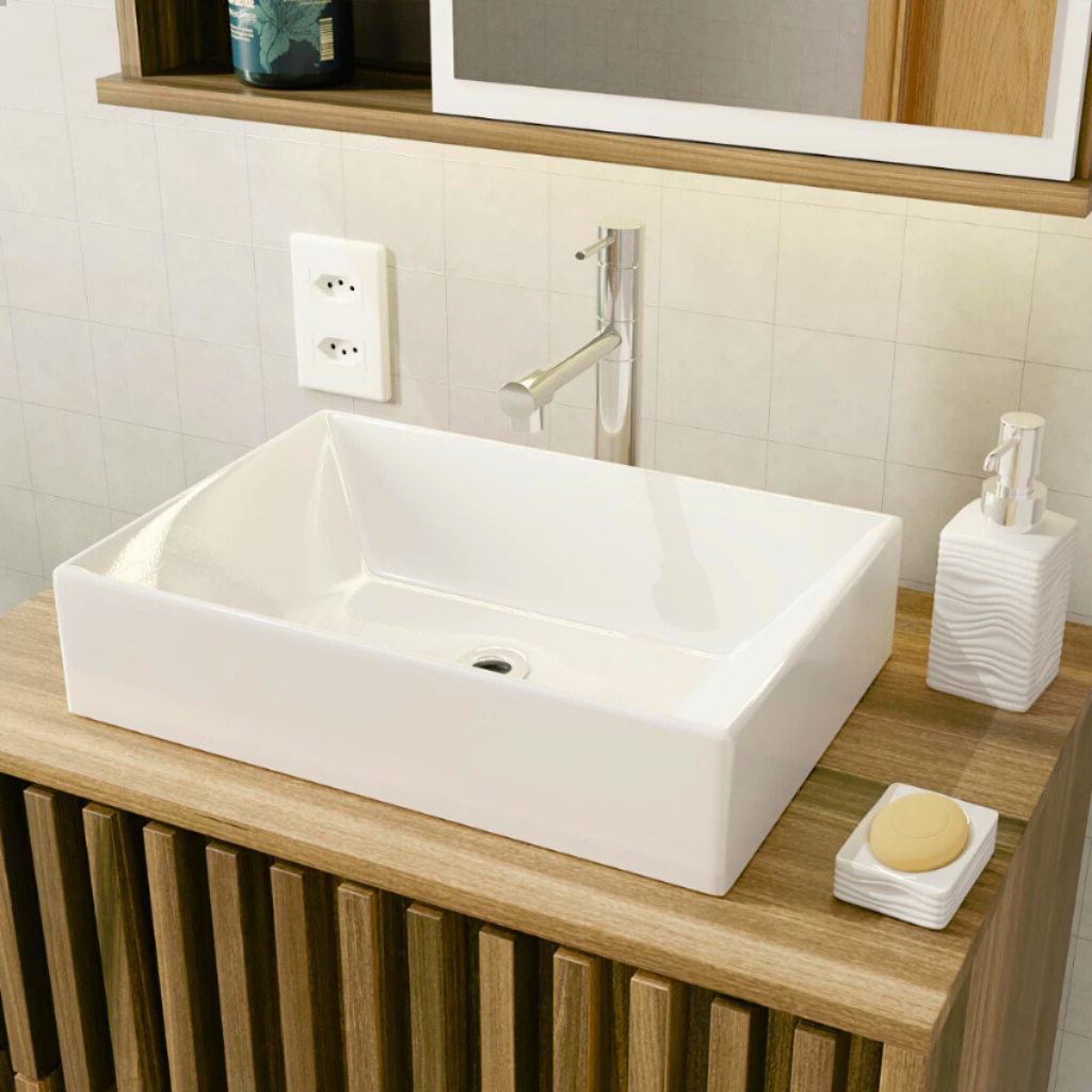 *PROMOÇÃO* Pia de Banheiro Cuba de Sobrepor 40cm de Apoio Lavatório Retangular Mármore Lavabo Branca