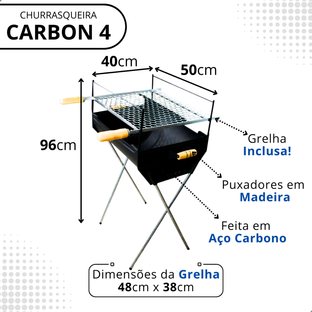 QUEIMA DE ESTOQUE! Churrasqueira a Carvão 96cm Com Grelha Inclusa em Aço Reforçado Espetinho Grande