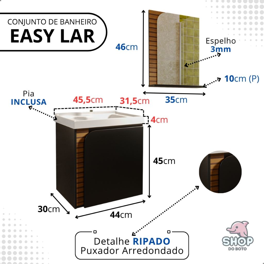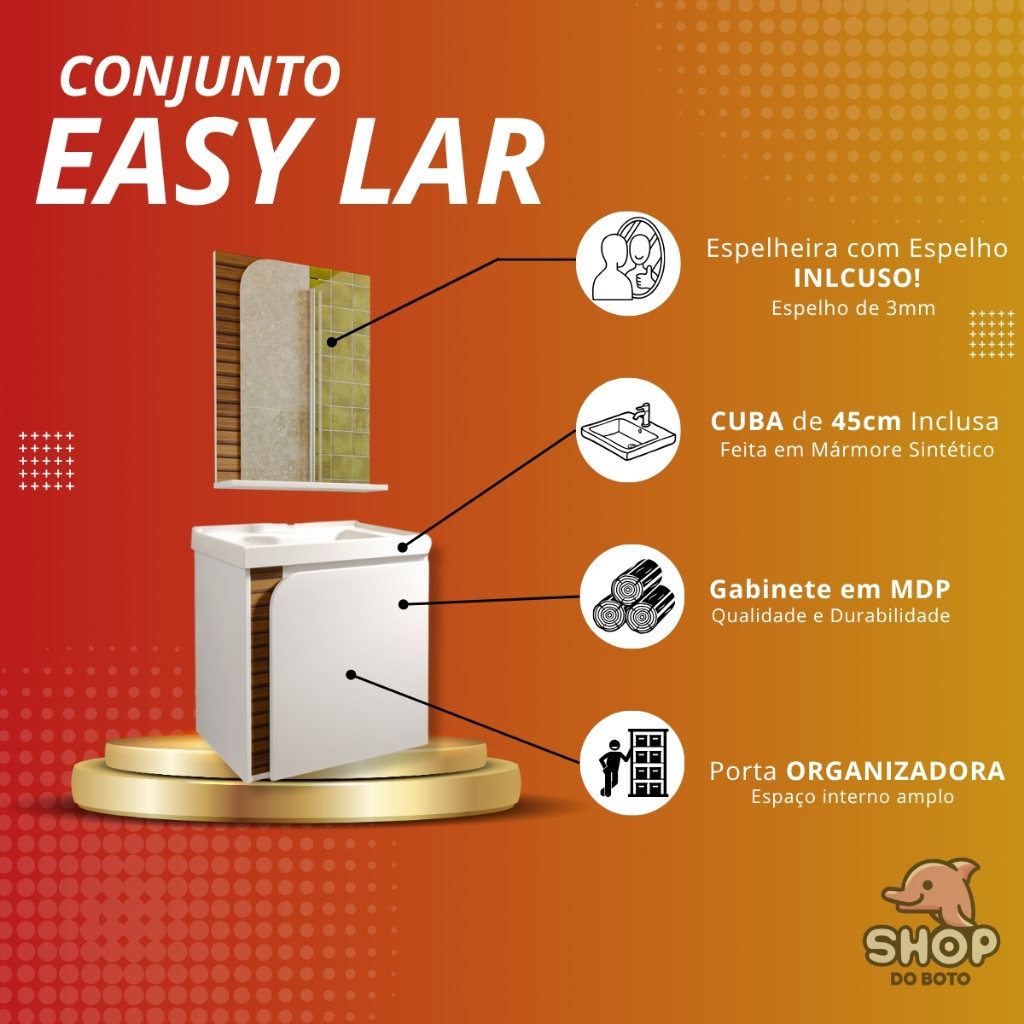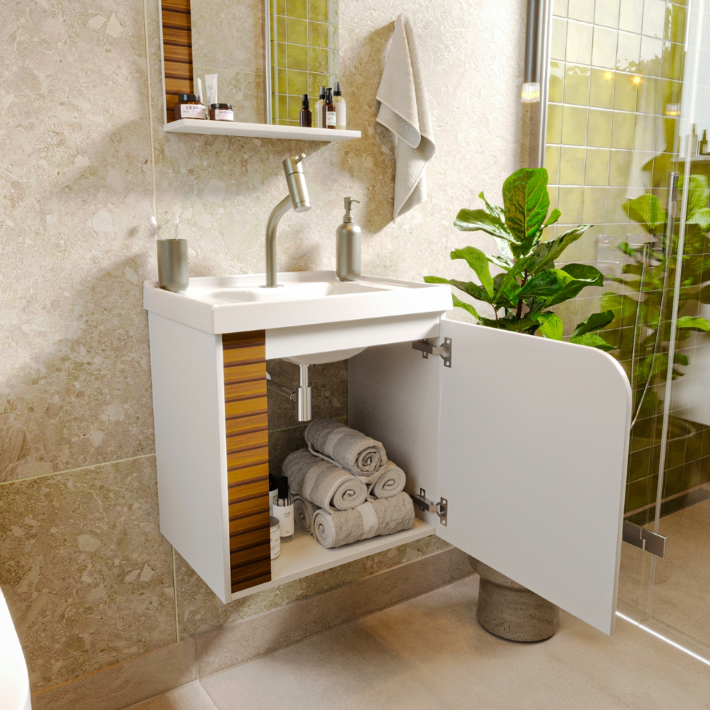 QUEIMA DE ESTOQUE! Gabinete Banheiro com Cuba de Mármore Completo Suspenso Armario e Espelho 44x49cm