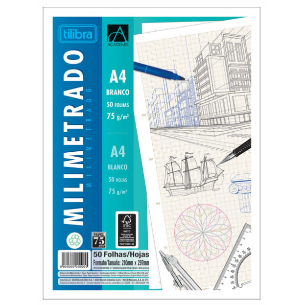 BLOCO MILIMETRADO A4 75G 50 FOLHAS ACADEMIE TILIBRA