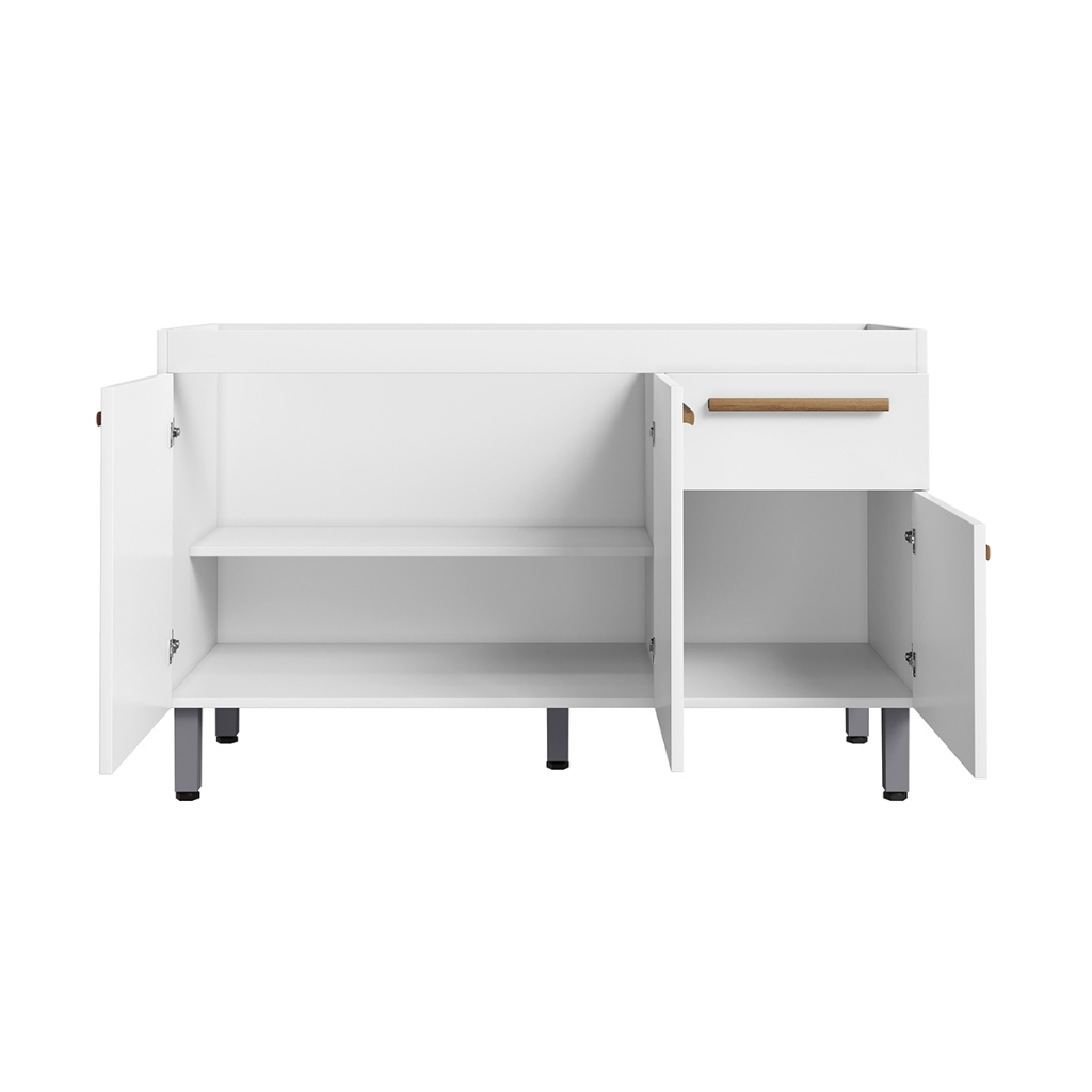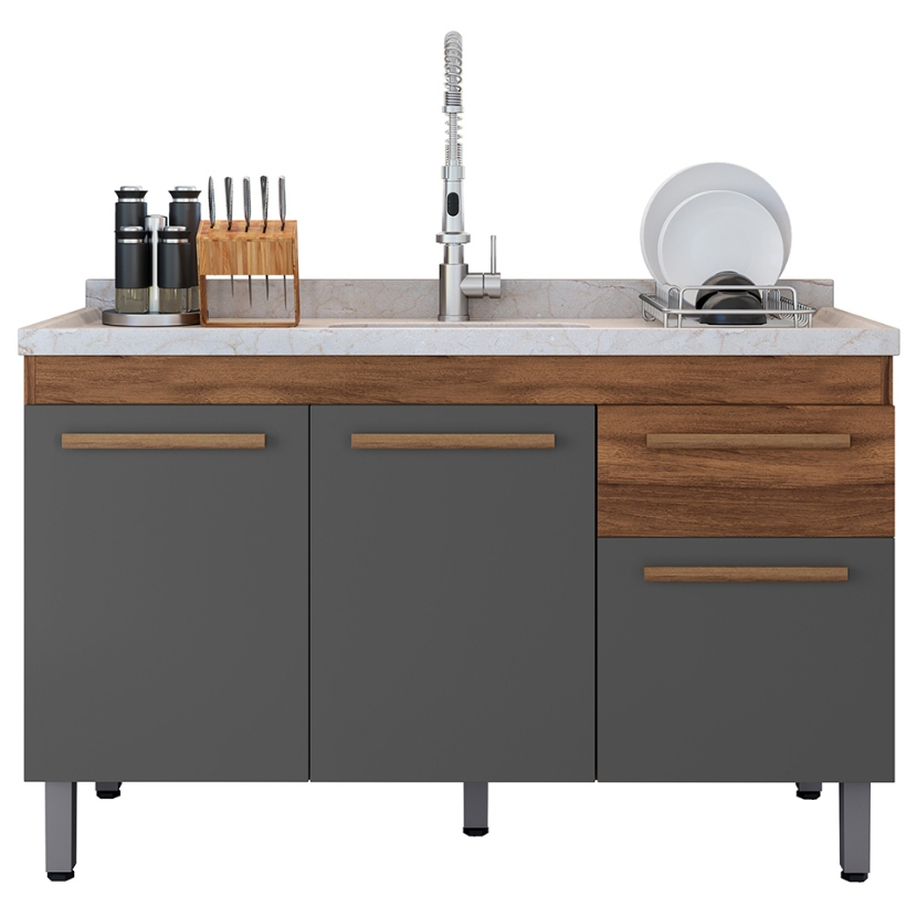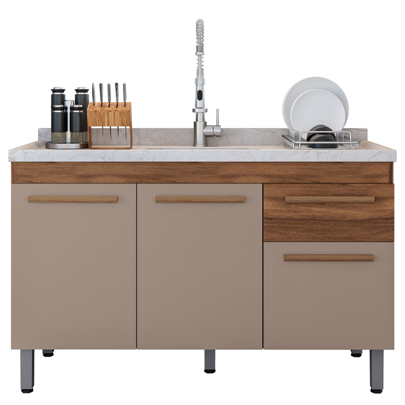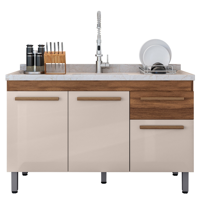 VÁRIAS CORES!! Ajp Móveis Armário Gabinete Balcão Para Pia De 120cm Sem Tampo Olivia 5 Pés Em Pvc 1 Gaveta 3 Portas