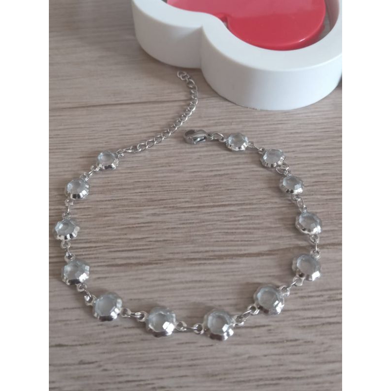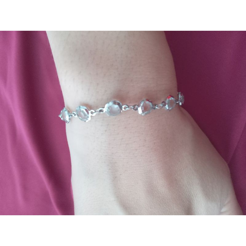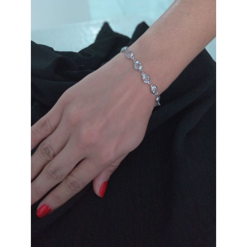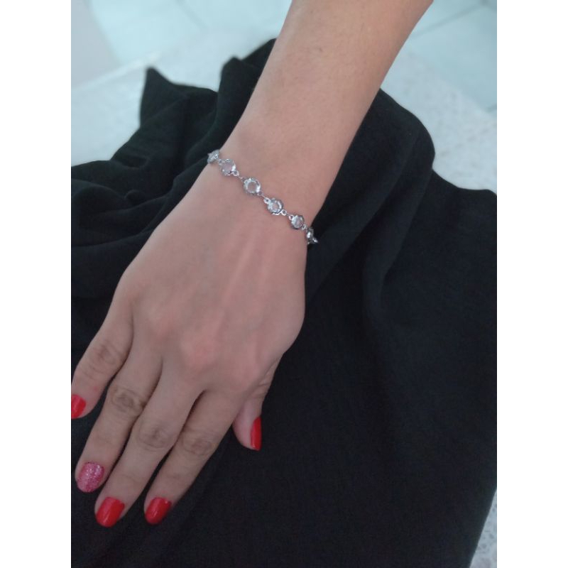 Pulseira Prata Aço inox com pedra cor cristal antialérgica (+ MIMO Brinco Aço Inox)(Redonda Clara)