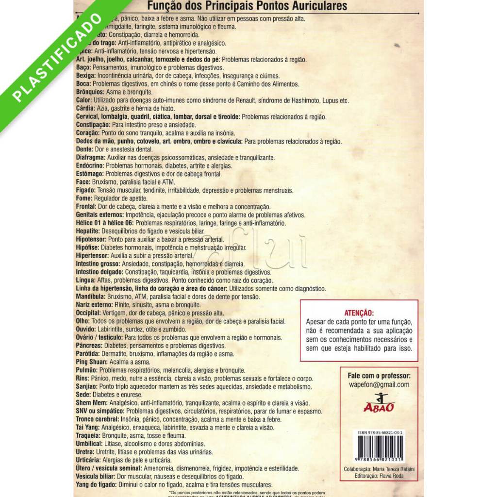 Mapa Pontos Auriculares - Acupuntura Auricular, Auriculoterapia A4 Plastificado