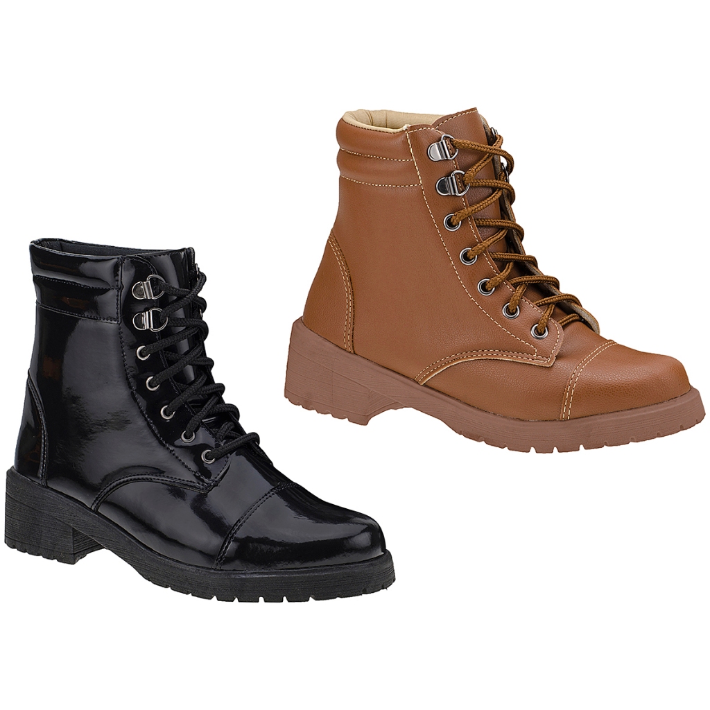 Kit 2 bota feminina Coturno Salto Baixo Aplicação Metal moda