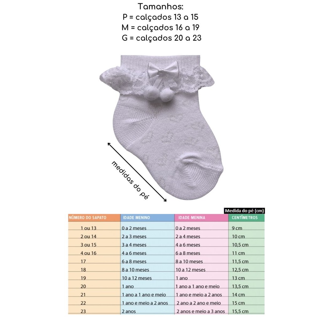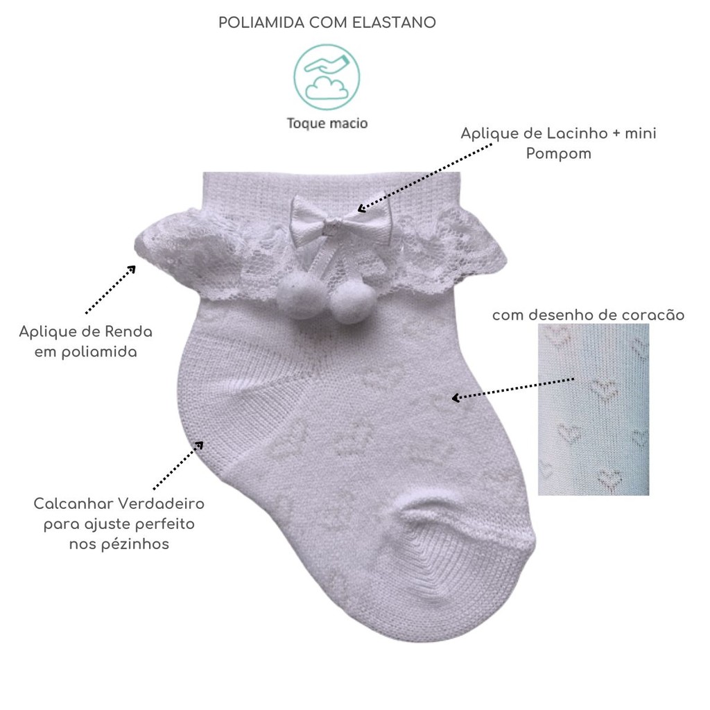 Meia Bebê Festa Batizado Cultos Com Apliques e Renda