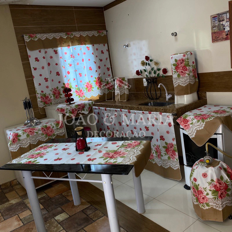 Jogo De Cozinha 8 Peças Estampadas Cortina de Janela Cortina para Pia Pano de Fogão Completo