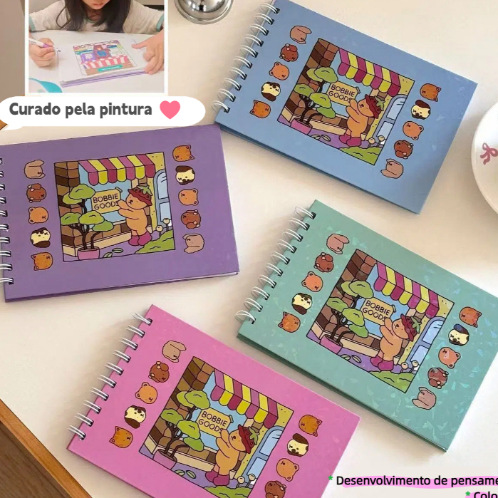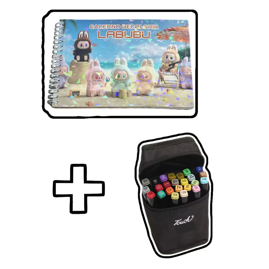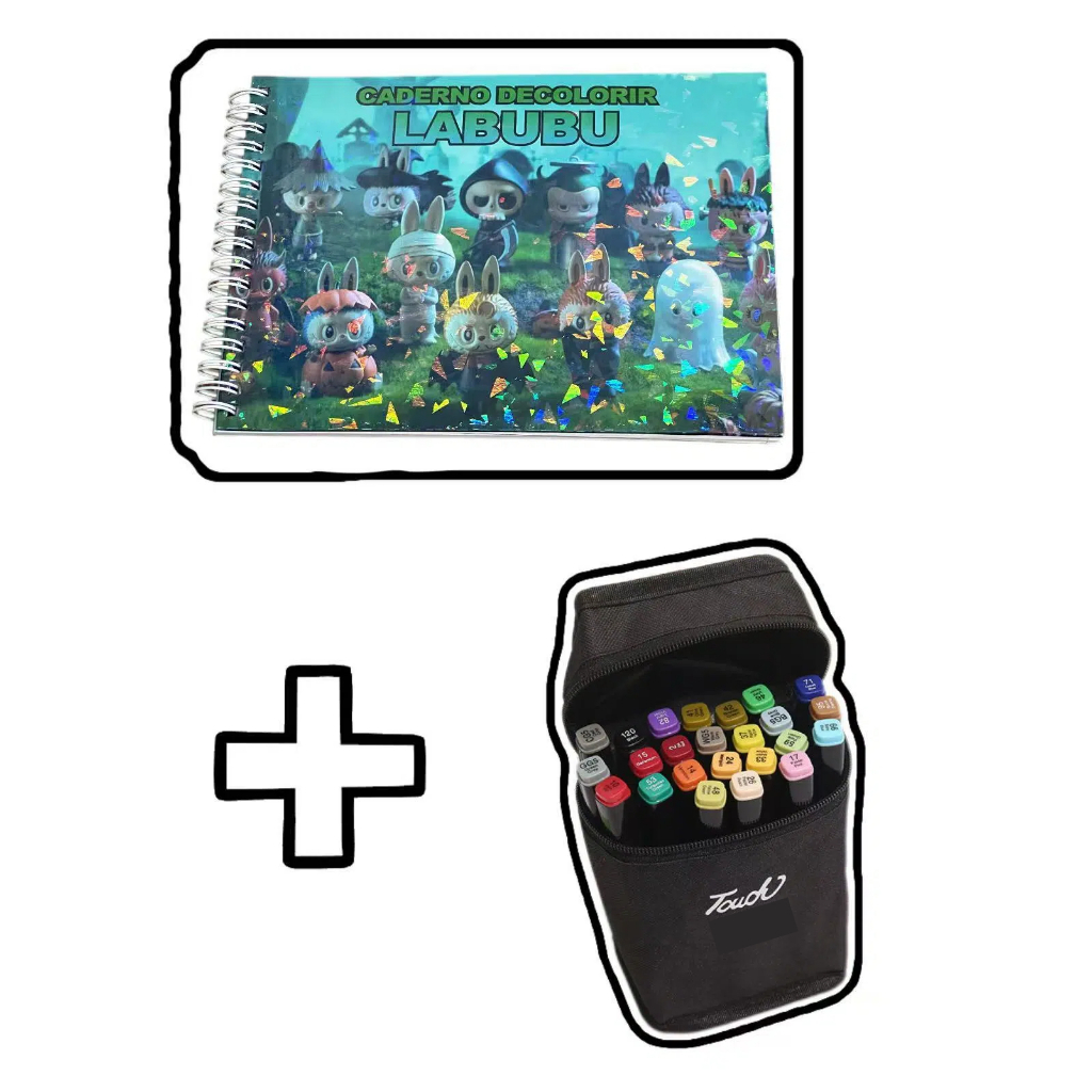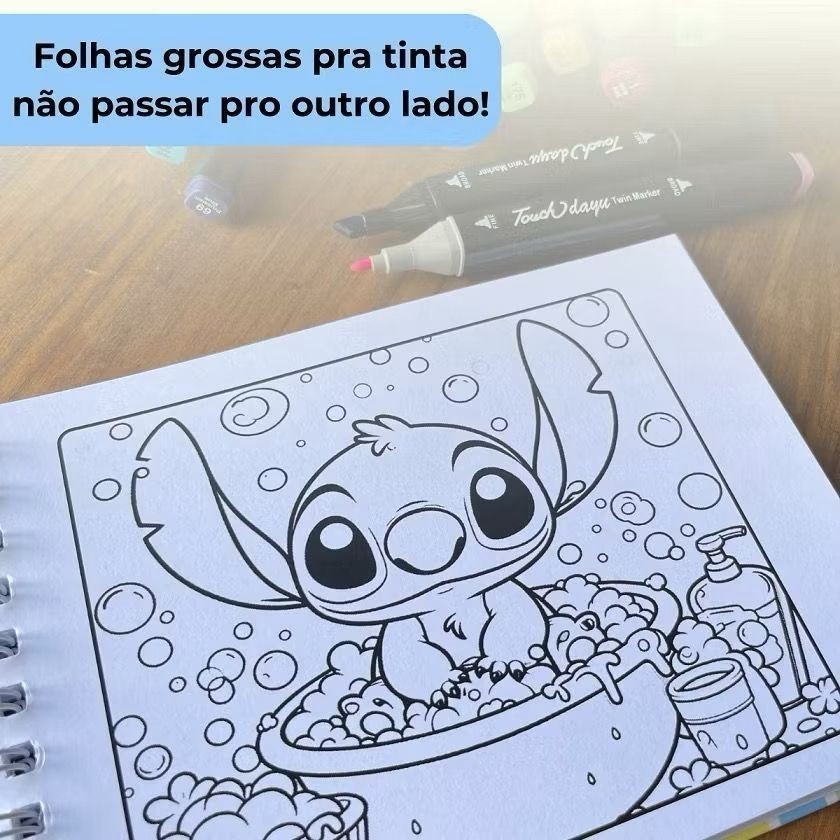 Livro de Colorir 50 Páginas Capa Dura + Kit Canetas Marcadoras Dupla Ponta 36/48/60 Cores
