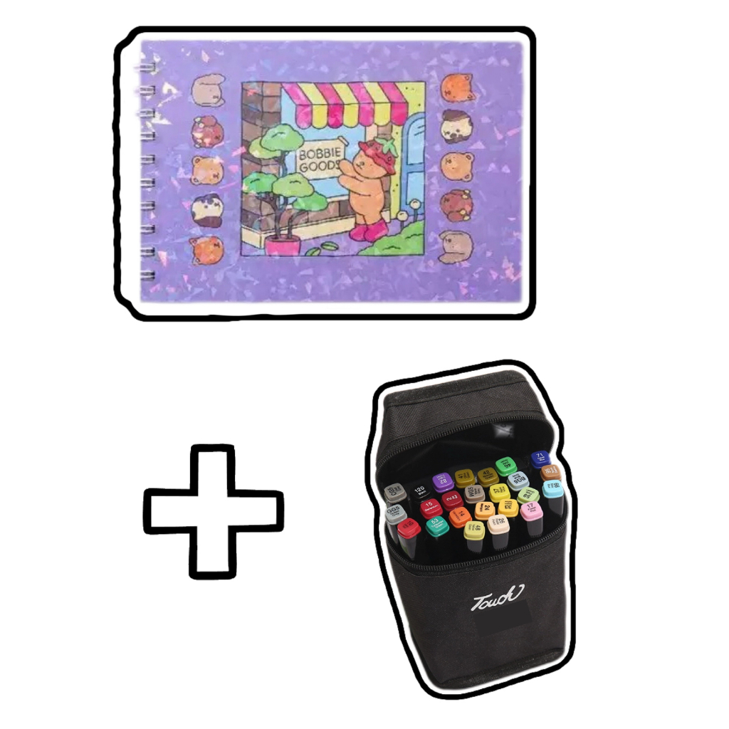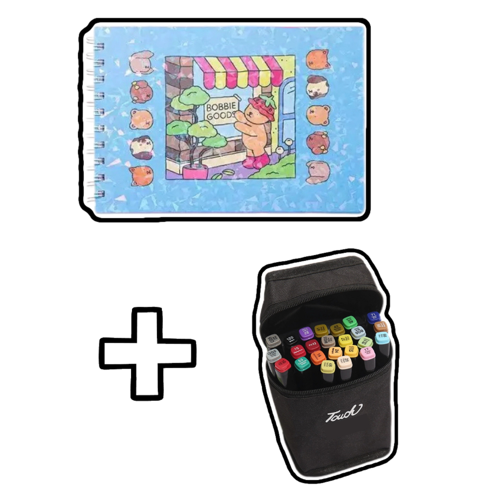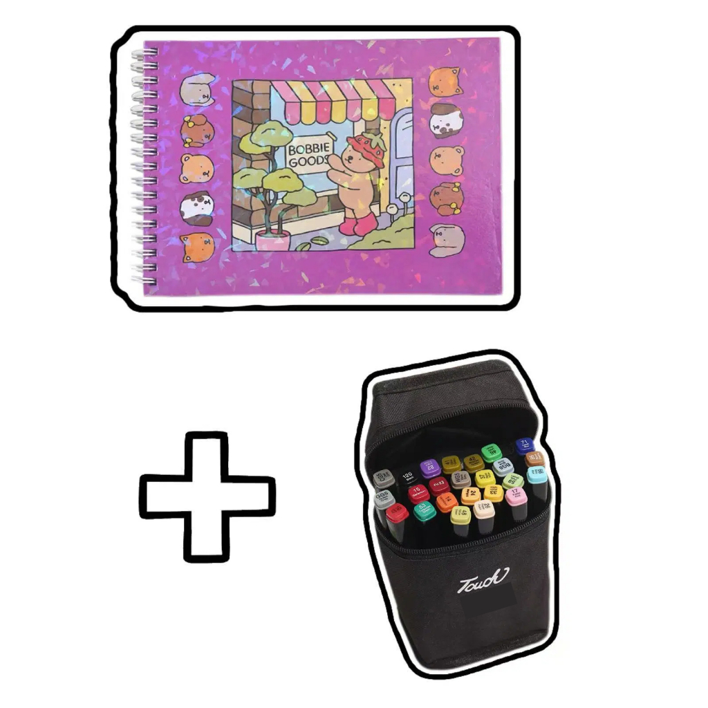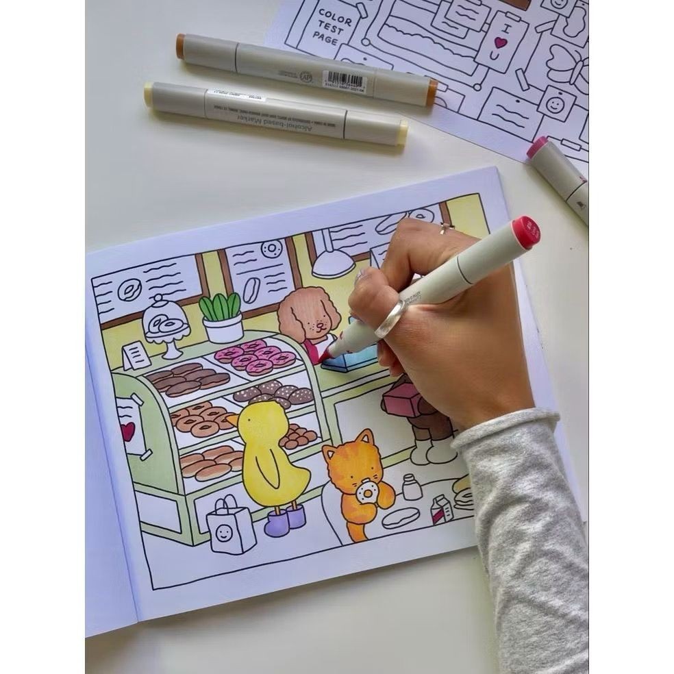 Livro de Colorir 50 Páginas Capa Dura + Kit Canetas Marcadoras Dupla Ponta 36/48/60 Cores