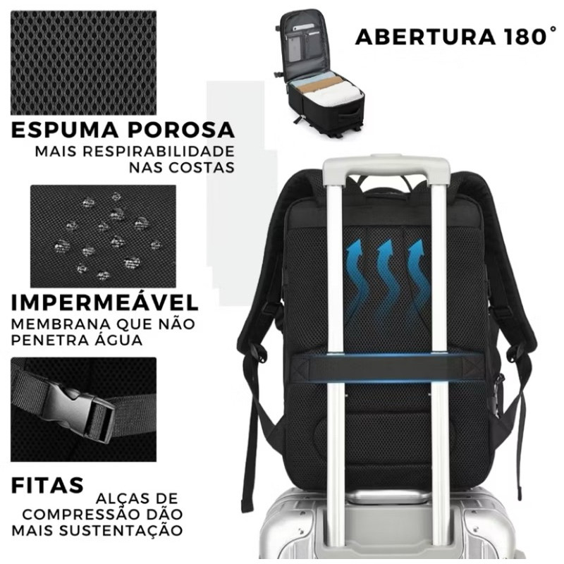 Mochila Executiva Reforçada Masculina/Feminina e Compartimento para Notebook Impermeável Com USB