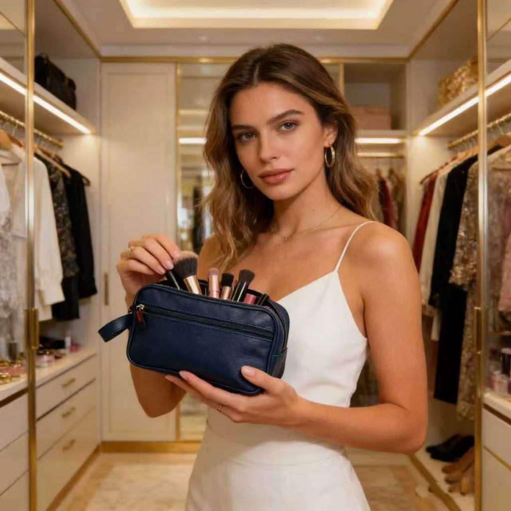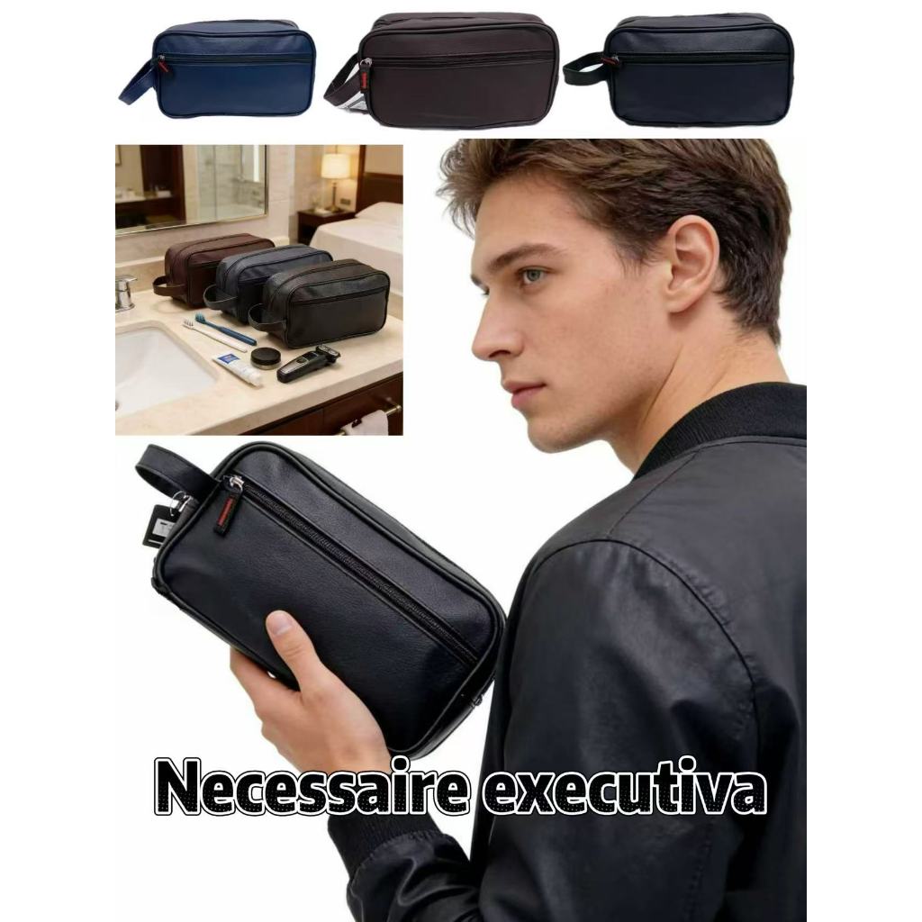 Necessaire Organizadora Bolsa de Mão em Couro Sintético Espaçosa Ideal para Viagem e Uso Diário