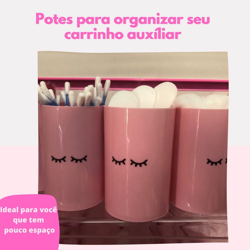 Kit Potinhos organizadores com e sem tampa bancada carrinho auxiliar Lash porta escovinha pincel
